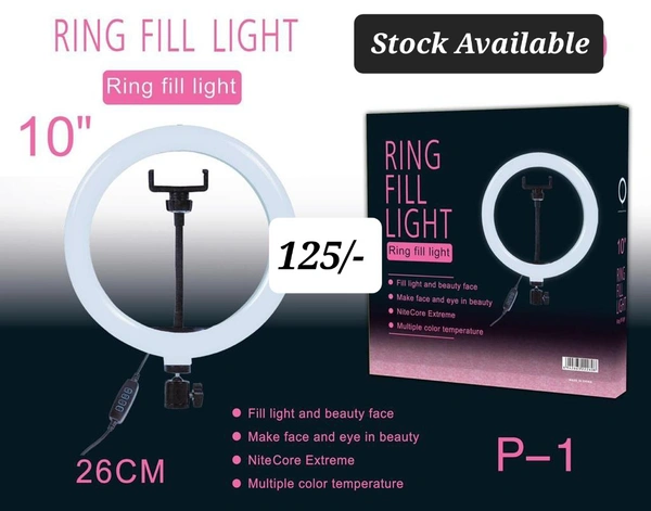 MirgIndia 10" Portable LED Ring Light with 3 Color Modes Dimmable Lighting | for YouTube | Photo-Shoot | Video Shoot | Live Stream | Makeup & Vlogging... About this item ✅Size and Design: Compact 10-inch diameter with a sleek and modern design. ⚫ [TRIPOD NOT INCLUDED] ONLY RING LIGHT ✅Advanced Lighting Technology: Utilizes cutting-edge LED technology for consistent, flicker-free illumination. ✅Color Temperature Control: Adjustable color temperature settings to achieve the desired lighting tone (warm to cool). ✅Dimmable Brightness: Multiple brightness levels for precise control in different lighting conditions. ✅Flexible Mounting Options: Equipped with a flexible and adjustable stand for versatile positioning. ✅Universal Smartphone Holder: Includes a holder compatible with most smartphones for hands-free operation. ✅Power Options: Powered by a standard AC adapter or USB for flexibility in power sources. *Thanks for connecting (Mirgindia)* Thanks so much. Shopping with Mirgindia karolbagh Delhi. *Note - China के मॉल में किसी भी प्रकार की कोई गारंटी / वारंटी नहीं होती ( चले तो चांद तक ना चले तो शाम तक )* *Only Wholesale* *Good Quality Product & Long Life* *Sorry For in our Policy 🙏 | No Guarantee | No Warranty | No Return | No Refund | No Exchange 💱 |* *।। धन्यवाद ।।*