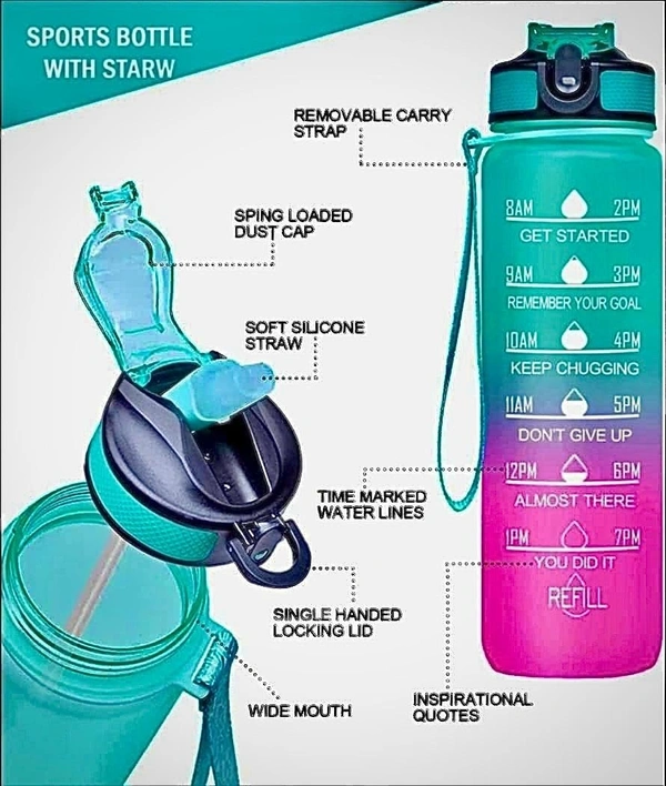 MirgIndia 1000Ml Plastic Water Bottle Motivational Bottle Comes with Time Marker, Sipper Straw Drinking Reminder, Leak Proof, Durable, BPA-Free Non-Toxic For Gym, Kids, Home,... About this item :- Package Included: 1x 1000 ML Unbreakable Time Marker Water Bottle With Straw (Pack Of 1, Mint purple) Unbreakable bottles are a great option for kids and anyone who is prone to dropping or damaging their water bottles. These bottles are durable and can withstand rough handling. No More Worrying About Harmful Chemicals Such As Bpa Affecting Your Health,If You Are Looking For A Bottle That Is Durable And Safe, it's important to look for one that is BPA-free to avoid harmful chemicals leaching into your water. Time Marked Water Bottle Is Unisex, Suitable For Students, Office Workers, Athletes, Etc. It Can Be Used At Home, School, Gymnasium, Yoga, Running, Traveling, Hiking, Cycling, Tennis, Camping Or Office Use.with A Variety Of Cute Patterns And Vibrant Colors Available. By using a drinking water reminder bottle, you can improve your hydration levels and promote overall health and wellness.Bottles with motivational messages or designs can be a fun way to encourage kids and adults alike to drink more water. Some bottles even come with a built-in tracker to help you keep track of how much water you've consumed. . The xyno motivational water bottle with straw for kids school, sipper water bottles 1 ltr leakproof, silicone insulated bottle with sipper straw water bottle pack 3 office home kitchen bpa free gym drinking 2 ltr time marker measurement sipper bottles straw set of 3 Motivational water bottle with straw for kids school, sipper water bottles 1 ltr leakproof, 2 ltr time marker measurement sipper bottles straw set of 3. *Thanks for connecting (Mirgindia)* Thanks so much. Shopping with Mirgindia karolbagh Delhi. *Note - China के मॉल में किसी भी प्रकार की कोई गारंटी / वारंटी नहीं होती ( चले तो चांद तक ना चले तो शाम तक )* *Only Wholesale* *Good Quality Product & Long Life* *Sorry For in our Policy 🙏 | No Guarantee | No Warranty | No Return | No Refund | No Exchange 💱 |* *।। धन्यवाद ।।*
