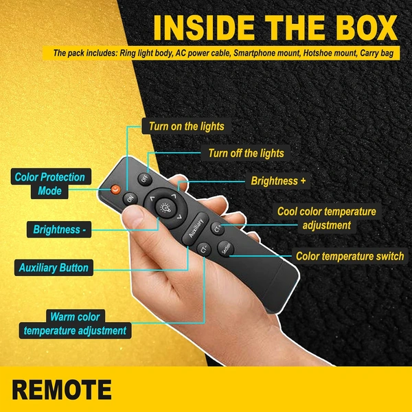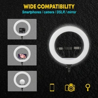 MirgIndia 14Inch Professional LED Ring Light 15W Dimmable Lighting with Table Tripod 2 Color Modes for Photo Shoot Video Shoot Live Stream Makeup Compatible with iPhone & Android Phones. About this item 【New Generation Lighting】Osaka's updated 14-inch ring light offers powerful lighting options with 2 color temperature (3400-5600K) and 9 level brightness (10-100%). It will be simple and effective tool to improve the quality of your videos and photos, whether you're streaming to YouTube, creating a TikTok or daily selfies. 【Multipurpose Table Tripod】The Tripod is made of high-quality Unbreakable ABS Plastic material that can stay steadily. Moreover, the Tiltable Hotshoe can be adjusted at any Angle to meet vertical, horizontal and overhead modes. 【Universal Accessories】The ring light kit comes with T-Shape Bracket and a phone holder for all Smartphone models. 【Content】The package includes 1x 14inch Ring Light , 1x T-bracket, 1x Phone Holder, 1x Table Tripod. 【Commitment】Osaka Ring light comes with a LIFETIME Service warranty. No matter what, you can now avail warranty during any given point of time (excludes transportation & spare) 【High Quality LED 】The Led beads of the ring light have a life expectancy upto 70,000 hours and professional ring lighting effect makes the skin more beautiful. Thanks for connecting (Mirgindia) Thanks so much. Shopping with Mirgindia karolbagh Delhi. Note - China के मॉल में किसी भी प्रकार की कोई गारंटी / वारंटी नहीं होती ( चले तो चांद तक ना चले तो शाम तक ) Only Wholesale Good Quality Product & Long Life Sorry For in our Policy 🙏 | No Guarantee | No Warranty | No Return | No Refund | No Exchange 💱 | ।। धन्यवाद ।।