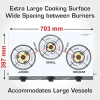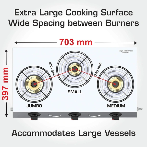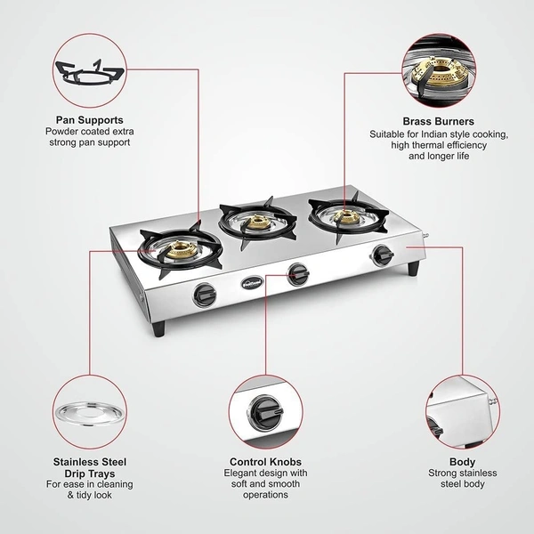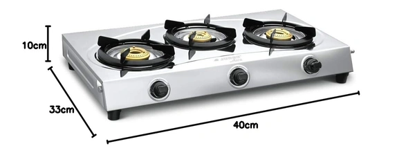 MirgIndia 3 Burner Gas Stove Stainless Steel | Brass Burners | Mirror Finish | Large Cooking Space | Anti-Rust | High Efficiency | Easy Clean Trays | ISI Certified | 5 Year Warranty. About this item :- 3 Brass Burners (2 Medium & 1 Small) – Perfect for Indian cooking with versatile flame control for different cooking needs Rustproof Stainless Steel Body with Mirror Finish – Durable, easy to clean, and built to last in Indian kitchens Extra-Large Cooking Surface & Wide Burner Spacing – Accommodates large vessels comfortably for multitasking Precision Gas Valves & Direct Flow Tubes – Ensures safety, fuel efficiency, and prevents ant and dust blockages Vitreous Enameled Pan Supports & Smooth Manual Ignition Knobs – Stable pan support and easy-to-use knobs for precise flame control Rigorously Tested for Safety – Leak test, load test, and life test ensure reliable, long-lasting performance. No Dust or Ant Blockage, Designed for safety and uninterrupted gas flow, especially in Indian kitchen conditions 5-Year Warranty & Trusted Brand Since 1978 , From the makers of Preethi, Vidiem brings you a gas stove tested for leak resistance, life cycle, and load, backed by a 5-year warranty for peace of mind. Easy Clean Removable Drip Tray: No need to be afraid of spills because you can simply remove and clean the Easy Clean Drip Trays. Collared Mixing Tube: An important safety function that prevents flame leaks. High Quality Safety Valves: Jyoti Gas Stoves use the highest quality safety valves to ensure complete safety from leaks. Rotating Back Inlet: The Gas Inlet is placed at the back of the stove and is 360 degree rotating, making it easy to install in any kitchen. *Thanks for connecting (Mirgindia)* Thanks so much. Shopping with Mirgindia karolbagh Delhi. *Note - China के मॉल में किसी भी प्रकार की कोई गारंटी / वारंटी नहीं होती ( चले तो चांद तक ना चले तो शाम तक )* *Only Wholesale* *Good Quality Product & Long Life* *Sorry For in our Policy 🙏 | No Guarantee | No Warranty | No Return | No Refund | No Exchange 💱 |* *।। धन्यवाद ।।*