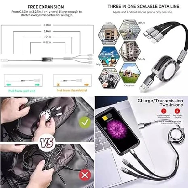 MirgIndia 3 in 1 Data Cable Multi Retractable 3.0A Fast Charger Cord, Multiple Charging Cable 4Ft/1.2m 3-in-1 USB Charge Cord Compatible with Phone/Type C/Micro USB for All About this item The cable comes with 3 Different pins allowing you to charge your Android, iOS and Type-C devices at the same time This Universal cable is made of High-quality Nylon material and makes it resistant to fraying and wear-related damage, more flexible and durable Excellent quality-multiple protection - over-current, short-circuit and over-temperature protect your device. Thanks for connecting (Mirgindia) Thanks so much. Shopping with Mirgindia karolbagh Delhi. Note - China के मॉल में किसी भी प्रकार की कोई गारंटी / वारंटी नहीं होती ( चले तो चांद तक ना चले तो शाम तक ) Only Wholesale Good Quality Product & Long Life Sorry For in our Policy 🙏 | No Guarantee | No Warranty | No Return | No Refund | No Exchange 💱 | ।। धन्यवाद ।।