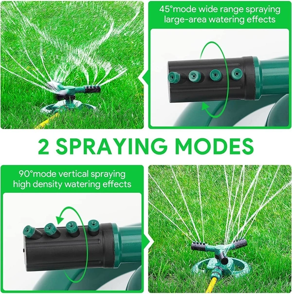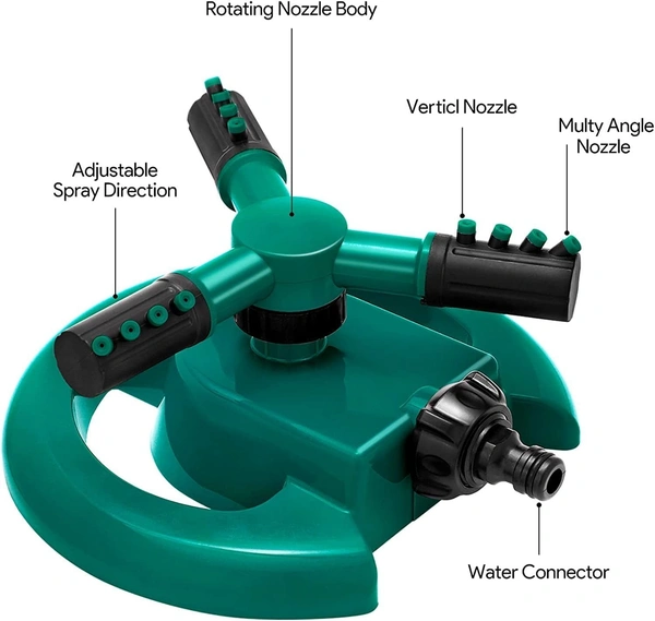 MirgIndia 360 Rotating Watering Garden 3 Arm 1 Pack, Automatic 360 Degree Rotating Garden Water Sprinkler, Leak-Proof Lawn Irrigation System for Summer Kids Playtime Outdoor Game Waterpark (Green) About this item :- 【SUPER SPRINKLER】 Lawn irrigation, garden watering, Three arm rotary lawn sprinkler.Three-arm and 360-degree rotation. garden sprinkler give your yard maximum water exposure, children to play and cool down in on hot and sunny days. 【DURABLE CONSTRUCTION】The sprinkler is designed to be stable Made from premium ABS plastic and a rust proof polymer, This won't crack or break. You can use this sprinkler season after season for years of great looking lawns, gardens, and yards. Won't rust or corrode like old fashioned metal sprinklers, this durable lawn sprinkler will provide long lasting, worry free performance. 【WIDE IMMENSE COVERAGE】The sprinkler has three 360-degree automatic rotating arms with 12 built-in spraying nozzles, The sprinkler spray distance is from 26 - 32.8ft with an 80 PSI water pressure, covering up to 3600 square feet evenly. That can delivers powerful watering every corner of your garden and make efficient and quick watering. 【ADJUSTABLE SPRAY PATTERN】Adjust the angles of the plate to control the Flow range. With different operation, adjust the spraying angles from 15°-45° to achieve your desired spraying effect; The 15° spraying angle rotates slowly and covers a smaller area while the 45° spraying angle rotates faster and covers a larger area. 【MULTIPURPOSE AND EFFICIENT】This garden lawn sprinkler is great for irrigating your lawn, garden, trees, agricultural land, tall plants or roof cooling. It ccan be used as a fun sprinkler set for children to play and cool down in on hot and sunny days. Let it spin, and let your kids funny play! You can also connect the sprinkler system to multiple units to cover a larger area. 【DIFFERENT SPRINKLING MODES】 The angle can be set to 90 degrees for more compact watering or 45 degrees for watering larger areas. Adjust the sprinkler nozzles to spray in any direction to customize your watering.. *Thanks for connecting (Mirgindia)* Thanks so much. Shopping with Mirgindia karolbagh Delhi. *Note - China के मॉल में किसी भी प्रकार की कोई गारंटी / वारंटी नहीं होती ( चले तो चांद तक ना चले तो शाम तक )* *Only Wholesale* *Good Quality Product & Long Life* *Sorry For in our Policy 🙏 | No Guarantee | No Warranty | No Return | No Refund | No Exchange 💱 |* *।। धन्यवाद ।।*