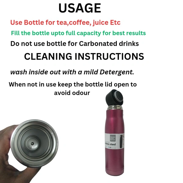 MirgIndia 550ml Prime Stainless Steel Vacuum Insulated Water Bottle Hot and Cold Flask Leak-Proof BPA-Free Travel and Gym Friendly Thermos Bottle for Office School and Outdoor Use (Black) About this item :- · Innovative Vacuum Insulation: Our travel mug keeps drinks ice cold for 30 hours or piping hot for 10 hours. Using our KELVEE TEMP-LOCK Technology, your tumbler maintains inside temperatures for longer hours. · Leak Proof Screw on Lid: Food quality silicone o-ring makes sure the sealing tightness & leak proof. Fill up your bottle with your favorite drinks and feel refreshed all day! All parts are TOP-RACK DISHWASHER SAFE. · Keep You Cool: No more disposable cups, no more toxic plastics. Dusgut uses only food-grade materials for our insulated water bottles, water bottle accessories, & pitchers. · Powder Coated & Durable Finish: Our stylish and durable powder coating gives your bottle extra protection from chipping and scratches. It is very compact and lightweight for women, teens and kids. *Thanks for connecting (Mirgindia)* Thanks so much. Shopping with Mirgindia karolbagh Delhi. *Note - China के मॉल में किसी भी प्रकार की कोई गारंटी / वारंटी नहीं होती ( चले तो चांद तक ना चले तो शाम तक )* *Only Wholesale | Good Quality Product & Long Life* *Sorry For in our Policy �� | No Guarantee | No Warranty | No Return | No Refund | No Exchange �� |* *।। धन्यवाद ।।*