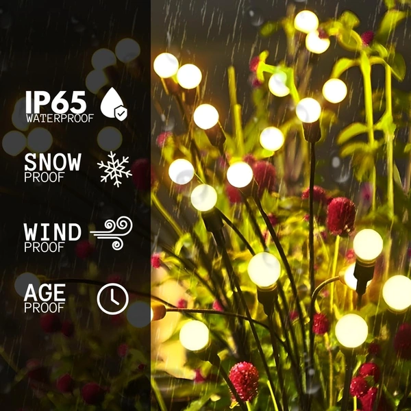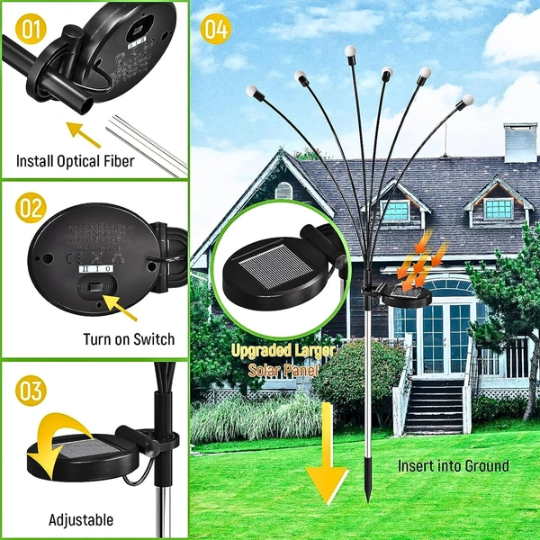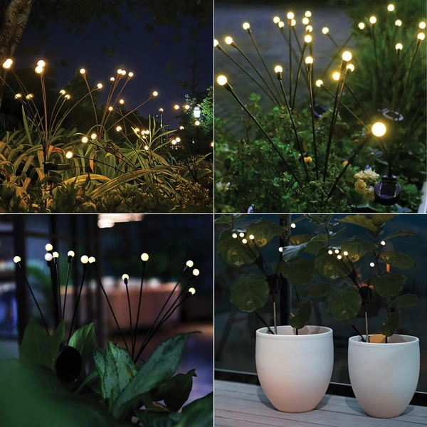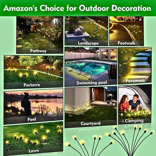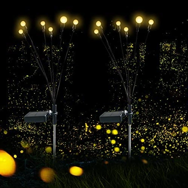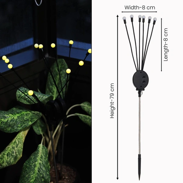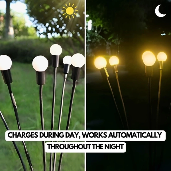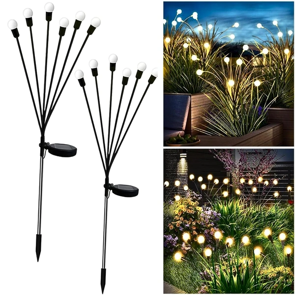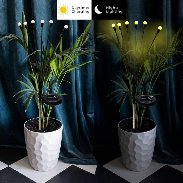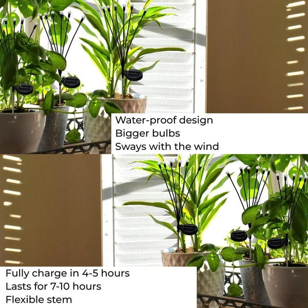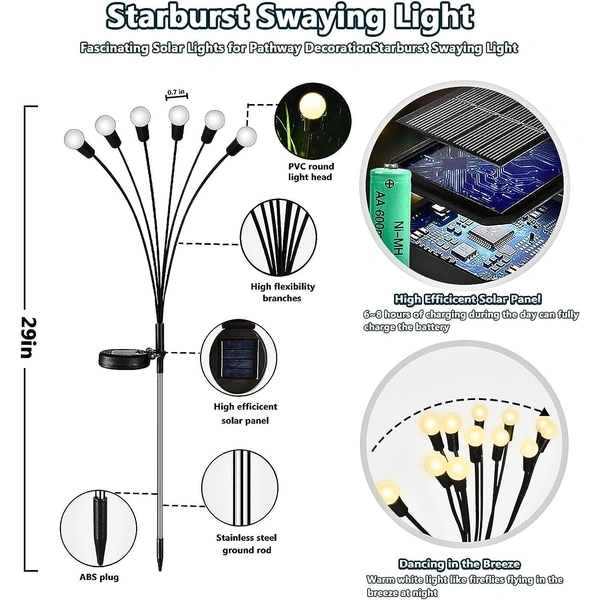 MirgIndia 6 Led Outdoor Solar Lights For Garden ( 2pc ) Solar Garden 6 LED Copper Wire Outdoor Waterproof Firefly Light Lamp with Swaying Starburst Effect 2 Lighting Mode for Landscape Pathway (Warm... About this item ITEM NAME: - SAHAPECT Solar Garden 6 LED Copper Wire Outdoor Decoration Waterproof Flower Firefly Light Lamp with Swaying Starburst Effect 2 Lighting Mode for Landscape, Pathway, Yard, Lawn ,Patio, Pots, Balcony, Terrace (Warm White Pack of 2) UNIQUE DESIGN: - Dancing in the Wind, Like Real Firefly - This product imitates the motion of the Firefly's wind dance thanks to updated 6 warm white LED bulbs, 2 lighting modes, and a branch design with a moderate amount of softness and hardness. It creates the impression that you are in a wonderful place, adding romance and intrigue to your garden. SOLAR POWER / GREEN ENERGY: - Powered by a 2V 80 ma solar panel, it would run for 8–10 hours to last all night after auto-charging for 6 hours during the day. The 1.2V/600mAh Ni-MH rechargeable AA battery allowed the star to remain lit throughout the night. LONGER WORKING TIME & SUPER DURABLE: - Light up 12 hours after fully charged. Charging time: 8 hours under sunlight. Be sure the solar panel is in a sunny location– not in a shady area – and the solar panel faces the sun. AUTOMATIC & WATERPROOF: - The LED light would charge during the day, turn on at night, and go out automatically at morning. The Firefly light is rainproof with an IP65 rating. You should take in the beautiful ambiance of the rainy night. EASY TO OPERATE & INSTALL: - Plug & Play, No Wiring needed- There is no need for wires or pricey installation, making it highly convenient. Simply attach the light to the stake in the ground, position the solar panel so that it will capture sunlight, plug it into an outside ground outlet, and turn it on. It makes getting a shining landscape simple for you and your family. GARDEN DECORATIONS: - The Starburst Light adds vigor and life to the garden night with this original garden decoration. Perfect outdoor decor makes pathways, gardens and patios beautiful at night. Additionally, it is a good choice for holiday décor. *Thanks for connecting (Mirgindia)* Thanks so much. Shopping with Mirgindia karolbagh Delhi. *Note - China के मॉल में किसी भी प्रकार की कोई गारंटी / वारंटी नहीं होती ( चले तो चांद तक ना चले तो शाम तक )* *Only Wholesale* *Good Quality Product & Long Life* *Sorry For in our Policy 🙏 | No Guarantee | No Warranty | No Return | No Refund | No Exchange 💱 |* *।। धन्यवाद ।।*