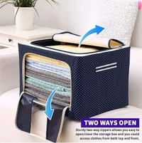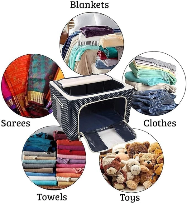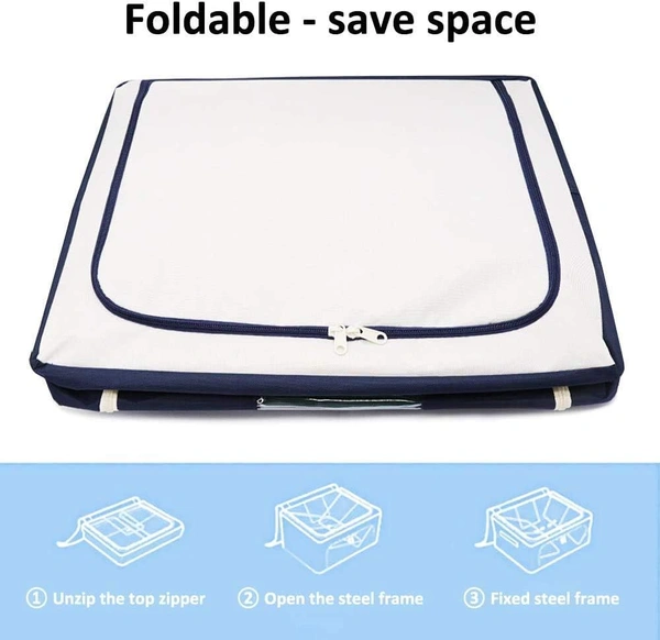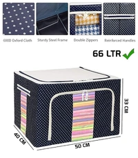 Mirgindia 66 Litre, Rectangular Foldable Clothes Storage Box/bin Boxes Extra Foldable Stackable Container Organizer,Cloth Storage Bags with Zip, Oxford Fabric. About this item LIVING BOX- A Perfect wardrobe organizer storage box with zip, to use as saree cover box or cloth storage bag. Store & protect clothing & household items with BlushBees storage boxes for clothes which is an ideal home storage organiser for your needs. Make the most of your wardrobe with folded garments neatly displayed in sturdy BlushBees storage foldable box.This storage boxes for clothes or blanket storage bags maximizes your space,making it a wonderful cupboard organizer for clothes ONE STORAGE BOX, MULTIPLE USAGE-- Living Boxes can be used as saree cover box, blanket storage bag, underbed storage organizer, cloth organizer for wardrobe, toy storage box, t shirt organizer, closet organizer, wardrobe organizer for clothes,saree boxes for storage or to store your expensive wedding lehenga, gowns. This blanket storage bag de-clutter any closet or wardrobe. The metal frame structure ensures that this BlushBees foldable storage cloth organizer box remains sturdy & firm HIGH QUALITY MATERIAL- saree boxes for storage is made of premium oxford fabric with pleasing looks, makes it an elegant storage solution for your wardrobe needs. Metal frame supports the fabric & keeps the cloth storage box firm. Transparent view windows of this BlushBees storage bags let you have a clear view of the items inside. Double zips on sides & top of this saree bags storage box ensures easy opening and closing. Two handles for easy carry. A label holder to identify contents. FOLDABLE - wardrobe organisers storage box can be folded back when not in use. This Wardrobe organizer for clothes collapses flat & can be easily transported too. Thus BlushBees foldable storage boxes saves space and is just the right thing when needing to maximize storage space & is perfect for those not-so-frequently used items in your household making it an amazing wardrobe cloth organizer. BlushBees storage boxes for clothes makes organizing your wardrobe easy & efficient. COMPLETE PROTECTION- Living Box offers complete protection from dust, moths, moisture. With BlushBees storage boxes you can store your clothes and sarees in them for long periods of time without they acquiring any dust or moisture. In short, this cupboard organizer for clothes is quite a sturdy storage box for your clothes; and eco-friendly too. Multiple storage options are possible with this BlushBees foldable storage boxes for clothes - A perfect almirah organizer & storage solution. *Thanks for connecting (Mirgindia)* Thanks so much. Shopping with Mirgindia karolbagh Delhi. *Note - China के मॉल में किसी भी प्रकार की कोई गारंटी / वारंटी नहीं होती ( चले तो चांद तक ना चले तो शाम तक )* *Only Wholesale* *Good Quality Product & Long Life* *Sorry For in our Policy 🙏 | No Guarantee | No Warranty | No Return | No Refund | No Exchange 💱 |* *।। धन्यवाद ।।*