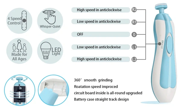 MirgIndia 6-in-1 Baby Nail Trimmer Ardith Baby Nail Clippers Safe for Newborn Toddler Adult Toes Fingernails Care Trim Kit 6 Grinding Heads, Baby Grooming Kit for New Born (Ud1) Multicolor 1 Count About this item 3-Filing Tools for Adults- 3-Cushioned Grinding Heads for Babies, 1-Main Unit; 1-Storage and Travel Case 1-user manual, make it perfect baby gift for home, One-Button Operation & 4 Adjustable Speeds- This electric baby nail clipper with one button operation easy to use. clockwise and counterclockwise reverse rotation, high and low speed. 360° all-round exquisite polishing makes toenails and totally safe to trim and polish fingernails and toenails for baby. 6-in-1 Manicure Set - Children's finger nail clippers come with 3 cushioned sandpapers safe for babies and children, and 3 attachments for adult use. Lightweight, compact allows you to carry anywhere and use whenever Whisper Quite:Equiped with a whisper quiet motor, our toddler nail clipper can work when baby sleeping without waking them up. And this baby nail timmer is bulif in soft led light, Our baby nail trimmer is compactable kit is a suitable baby shower registry for expecting moms or first-time parents. When it's time for baby nail cut, you'll be surely remembered as the one who sent the gift. It's also an ideal gift for baby shower gifts! Thanks for connecting (Mirgindia) Thanks so much. Shopping with Mirgindia karolbagh Delhi. Note - China के मॉल में किसी भी प्रकार की कोई गारंटी / वारंटी नहीं होती ( चले तो चांद तक ना चले तो शाम तक ) Only Wholesale | Good Quality Product & Long Life Sorry For in our Policy �� | No Guarantee | No Warranty | No Return | No Refund | No Exchange �� | ।। धन्यवाद ।।