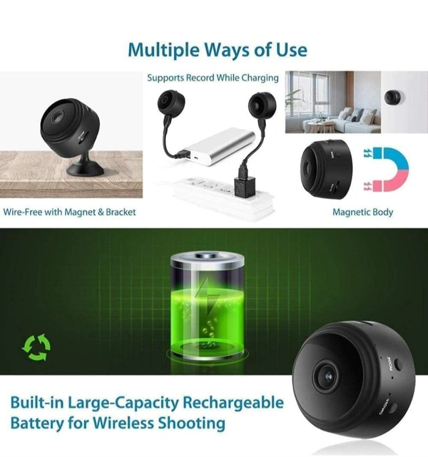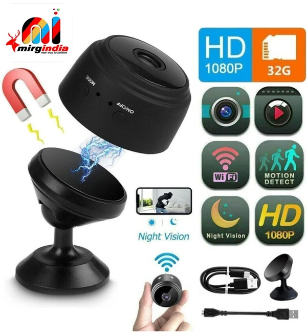 MirgIndia A9 High HD Focus Indoor Security Camera Security Camera for Home Outdoor HD Focus WiFi Magnetic Live Stream IP Wireless 1080P Audio Video Nanny Camera for Home Offices Security. About this item This Renewed product is tested to work and look like new with minimal to no signs of wear & tear; the product comes with relevant accessories and is backed by a minimum six month seller warranty; box may be generic Technoview CCTV SECURITY SYSTEM 150° WIDE ANGLE & FULL HD 1080P : Our Wireless Security Camera Adopts 2.0MP image sensor with a free app & The camera can capture 1920x1080P video at 20 fps with high color reproduction .The 80 degree hi foucus view lens offers a large view range to monitor your care. Perfect for housekeeper, nanny cam, baby camera, pet camera. Technoview CCTV SECURITY SYSTEM WIFI REMOTE MONITORING : No matter where you are, you can monitor your home/office/pet/baby via your smartphone app after the camera is connected to the Wi Fi. Perfect as a camera in Office, Home, and Car etc. Remotely view live video anytime, anywhere. Technoview CCTV SECURITY SYSTEM ONG LASTING BATTERY : This camera comes with 300mAh rechargeable lithium-ion battery that can last about 1 hour of continuous HD video recording. Also, it supports recording while charging. Loop recording, record & playback with local TF card is also supported Technoview CCTV SECURITY SYSTEM Compact size, You easily place it in the corner of Your home, office, store, car, or just put in your pocket or bag pack. Powerful magnets allow you to place the small security camera to any surface. Perfect product to protect your home during the day or night. wifi camera spy camera hidden camera security camera speak camera. *Thanks for connecting (Mirgindia)* Thanks so much. Shopping with Mirgindia karolbagh Delhi. *Note - China के मॉल में किसी भी प्रकार की कोई गारंटी / वारंटी नहीं होती ( चले तो चांद तक ना चले तो शाम तक )* *Only Wholesale* *Good Quality Product & Long Life* *Sorry For in our Policy 🙏 | No Guarantee | No Warranty | No Return | No Refund | No Exchange 💱 |* *।। धन्यवाद ।।*