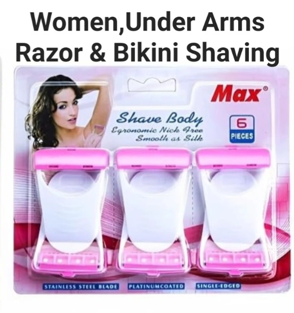 MirgIndia Body Hair Removal & Bikini Shaving (Pack Of 6) Heavy Quality Maxes Painless Hair Removal Body Shaver & Bikini Shaving Razor For Women Stainless Steel Sharp Blade Disposable Body Shaver Under Arms Bikini Area About this item Patented Blade Construction:Stainless Steel 1 blade razor system with safety pink silicon teeth help precise shaving along every angle of your body smoothly, closely,saftly,non-slip groove handle keep your consistantly shaving on wet body Disposable Razor Blade for Women size up small light razor fit for travel and indoor bathing totally new brand and design all protecting your secret Package Contents : 12 Pcs Razor Blade Hair Removal Disposable Blades Special Features 1 : Sensitive Skin :Women razor blade needs your minimum pressrue over skin /no need razor lubricant as optimal shaver blades for sensitive skin Special Features 2 : Perfect for women on the go, this razor is disposable so it easily goes wherever you go. *Thanks for connecting (Mirgindia)* Thanks so much. Shopping with Mirgindia karolbagh Delhi. *Note - China के मॉल में किसी भी प्रकार की कोई गारंटी / वारंटी नहीं होती ( चले तो चांद तक ना चले तो शाम तक )* *Only Wholesale* *Good Quality Product & Long Life* *Sorry For in our Policy 🙏 | No Guarantee | No Warranty | No Return | No Refund | No Exchange 💱 |* *।। धन्यवाद ।।*