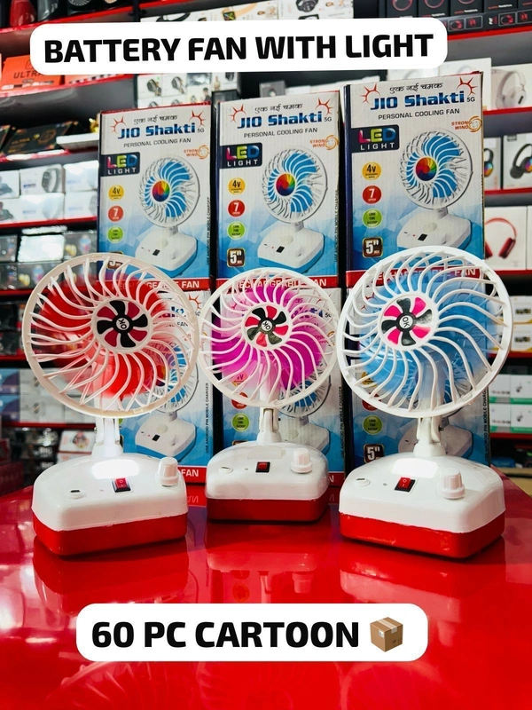 MirgIndia Cool Fan Minimum 6 pc Box ( 78×6 = 468 ) Portable Rechargable Desk Fan 220Mm | 38Wh Lifepo4 Battery | 4-Hr Back-Up| Perfect For Kitchen, Home Office And Study Table| Superior Airflow | Free Charger In Box | Made In India,White About this item :- Portable cooling solution: Enjoy refreshing airflow wherever you go, thanks to its compact size and cordless design. Rechargeable convenience: Say goodbye to constant battery replacements – simply recharge and enjoy hours of cooling comfort. Versatile use: Perfect for office desks, bedside tables, outdoor activities, and more, offering cooling relief in any space. Adjustable speed settings: Customize your comfort with multiple speed options, ensuring optimal airflow for your needs. Eco-friendly design: Reduce waste and energy consumption with this sustainable alternative to traditional fans, promoting a greener lifestyle. *Thanks for connecting (Mirgindia)* Thanks so much. Shopping with Mirgindia karolbagh Delhi. *Note - China के मॉल में किसी भी प्रकार की कोई गारंटी / वारंटी नहीं होती ( चले तो चांद तक ना चले तो शाम तक )* *Only Wholesale | Good Quality Product & Long Life* *Sorry For in our Policy 🙏 | No Guarantee | No Warranty | No Return | No Refund | No Exchange 💱 |* *।। धन्यवाद ।।*