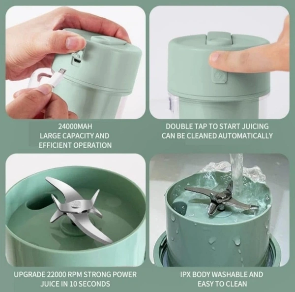 MirgIndia Cup Juice Portable Multifunctional Electric Juicer Fresh Bite Box Portable Juice Blender, Juice Maker, Fruit Juicer Machine Electric, USB Rechargeable Personal Size Mini Juicer Grinder, Shakes and Smoothies.. About this item :- It has juicer mixer have smart safety protection device, magnetic sensing switch ultra safe to use and clean, the juicer cup's body and bottom can be separated, you can easy to clean it The personal size blender will identify magnetic stripe automatically and stop blending when the cup is separated from the base, so as to protect your safety. With our juice blender mixing kinds of fruit and vegetables,you can make natural tasty juice,milkshake,smoothie and other baby food.It's very portable and great for traveling, outdoor.; Multi Functional : drink a protein shake, smoothie or healthy drink everyday, not only for making a protein shake, smoothie, juice, and it works well for vegetable and other baby food. This little body light weight design is easy for you carry it to school,office,parks,camping, anywhere you want to. and it also convenient for charge by power bank, laptop, computer, car or other usb devices. The mini blender for shakes and smoothies is made from food-grade material. Suit for producing 8-13 ounces of light shakes, smoothies, fruit juices, vegetable juices, etc. *Thanks for connecting (Mirgindia)* Thanks so much. Shopping with Mirgindia karolbagh Delhi. *Note - China के मॉल में किसी भी प्रकार की कोई गारंटी / वारंटी नहीं होती ( चले तो चांद तक ना चले तो शाम तक )* *Only Wholesale | Good Quality Product & Long Life* *Sorry For in our Policy 🙏 | No Guarantee | No Warranty | No Return | No Refund | No Exchange 💱 |* *।। धन्यवाद ।।*