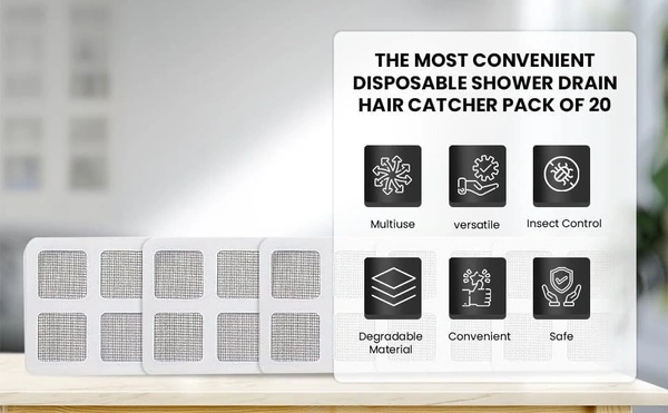 MirgIndia Drain Cover 20 Pcs Disposable Shower Drain Cover Hair Catcher Shower Drain Mesh Stickers, Bathroom, Laundry, Bathtub, Kitchen Drain Floor Sink Strainer Filter. About this item :- DISPOSABLE-- APARTMENT ESSENTIALS MUST HAVE: Our shower drain hair catcher is made of degradable material, which effectively protects the environment. The disposable hair catcher has 4mm holes, which can effectively catch hair and drain water faster. No more cleaning hair, a good bathroom accessories for hair catching. With our shower drain cover hair catcher, you simply peel off and toss when it becomes full. TIME SAVER-- YOUR POWERFUL CLEANING SUPPLIES: A few seconds to prevent drain clogs. Extremely easy to use. Just peel & stick over the drain and replace every 2 weeks (or as necessary). Our hair catcher shower drain will catch all the hair include fine hair and stop from going down the drain while you spend time on better things in your life. A bathroom accessories you muat have. WATERPROOF STICKINESS: Upgraded composite waterproof adhesive has better stickiness than other disposable drain hair catchers, making our disposable hair catchers stay in place and suitable for any types of surface(eg: metal, ceramic, tile) Tip: Please take off when it is wet for easy removal. A home essentials for new home. SUPERIOR MESH FILTRATION: Precision-engineered mesh ensures optimal hair-trapping without disrupting water drainage. Say goodbye to unwanted blockages and hello to continuous, unimpeded water flow. Experience functional superiority that addresses clogging issues at their very origin. MULTI-USE VERSATILITY: Pivot beyond the bathroom with a hair catcher that extends its utility to various places including the kitchen. These multi-tasking protectors are not just for hair but adept at preventing food and other debris from causing clogs, making them an indispensable addition to your household cleaning arsenal. *Thanks for connecting (Mirgindia)* Thanks so much. Shopping with Mirgindia karolbagh Delhi. *Note - China के मॉल में किसी भी प्रकार की कोई गारंटी / वारंटी नहीं होती ( चले तो चांद तक ना चले तो शाम तक )* *Only Wholesale | Good Quality Product & Long Life* *Sorry For in our Policy 🙏 | No Guarantee | No Warranty | No Return | No Refund | No Exchange 💱 |* *।। धन्यवाद ।।*