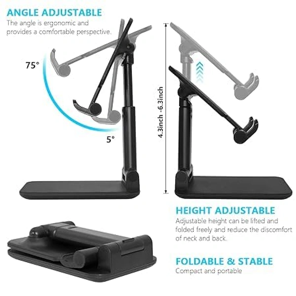 MirgIndia Folding Desktop Moblie Stand Angle Height Adjustable Mobile Phone Holder for Desk, Office, Tablet Stand Compatible with All Phones Phone/iPad/Tablet/Kindl 4-10 Inches Cell Phone/Tablet ( mix Colour ) About this item :- 📱 Universal Compatibility for Phones & Tablets: Compatible with iPhone, Android, smartphones, and mini tablets up to 10.5 inches. Perfect for watching videos, studying, online classes, gaming, or work calls. 🛋️ Multi-Surface Use – Table, Desk & Bed: Whether you're watching Netflix in bed, attending a Zoom call at your desk, or reading at the dining table, this stand adapts to any setup with ease and stability. 🔁 Multi-Angle Adjustable for Perfect View: Adjustable height and tilt allow you to get the ideal viewing angle. Reduce neck strain while studying, gaming, or binge-watching your favorite series. 🧳 Foldable & Portable for Travel or Office: Lightweight and compact design makes it travel-friendly. Easily fits into a bag, laptop sleeve, or office drawer for quick access anytime, anywhere. 🧲 Anti-Slip & Durable Build: Made of premium ABS with anti-slip pads that keep your phone stable while protecting it from scratches—sturdy enough to hold even heavier devices. 🎮 Ideal for Study, Entertainment & Gaming: Great for students attending online classes, mobile gamers, or anyone who wants hands-free screen access—an essential for multitaskers and digital users. 🎁 Sleek Design, Perfect for Gifting: Modern black finish, minimalist look, and high usability make it a thoughtful gift for students, professionals, gamers, and gadget lovers. *Thanks for connecting (Mirgindia)* Thanks So Much Shopping With Mirgindia karolbagh Delhi. *Note - China के मॉल में किसी भी प्रकार की कोई गारंटी / वारंटी नहीं होती. ( चले तो चांद तक ना चले तो शाम तक )* *Always Only Wholesale | Good Quality Product & Long Life* *Sorry For in our Policy 🙏 | SELING USED ITEM | NO WARRANTY | NO GUARANTEE | NO RETURN BACK POLICY | NO REFUND | NO EXCHANGE | DOES BUYER CLAIM REFUND | *।। धन्यवाद ।।*