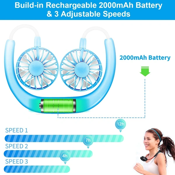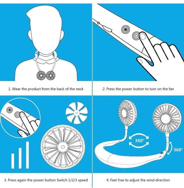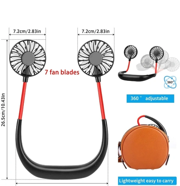 MirgIndia Folding Personal Neck Fan Portable Rechargeable Neck Fan – Hands-Free Personal Fan with 3 Speeds, 1700mAh Battery, Lightweight & Low Noise Design for Indoor/Outdoor Use. About this item:- 💨 Hands-Free Cooling Anywhere – Stay cool effortlessly with this wearable neck fan. The ergonomic neckband design allows hands-free operation, perfect for travel, workouts, or everyday use 🔄 360° Adjustable Dual Fans – Two flexible fan heads rotate independently to direct airflow exactly where you need it. Enjoy custom comfort with adjustable angles for face, neck, or shoulders 🔋 2000mAh Rechargeable Battery – Built-in USB rechargeable battery delivers up to 12 hours of cooling time. Quickly recharge via USB and enjoy powerful airflow all day long 🌬️ 3 Wind Speed Modes – Choose from low, medium, or high-speed settings with simple one-button control. Tailor airflow to suit your needs whether indoors or outdoors 👜 Lightweight & Travel-Ready – Compact and foldable design fits easily in a bag. Ideal for sports, office, home, gym, camping, hiking, kitchen, or commuting during hot summer days Powerful Cooling Performance: Engineered with 7 wide turbine blades and an innovative air intake design, this portable fan efficiently slices through air, delivering a gentle and refreshing breeze akin to natural wind. Compared to other handheld fans, the innovative blade design enhances airflow by 90%, with a maximum motor speed of up to 6800RPM. *Thanks for connecting (Mirgindia)* Thanks So Much Shopping With Mirgindia karolbagh Delhi. *Note - China के मॉल में किसी भी प्रकार की कोई गारंटी / वारंटी नहीं होती. ( चले तो चांद तक ना चले तो शाम तक )* *Always Only Wholesale | Good Quality Product & Long Life* *Sorry For in our Policy 🙏 | SELING USED ITEM | NO WARRANTY | NO GUARANTEE | NO RETURN BACK POLICY | NO REFUND | NO EXCHANGE | DOES BUYER CLAIM REFUND | *।। धन्यवाद ।।*