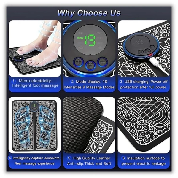 Mirgindia Foot Massager and Pain Relief Wireless Electric EMS Foot & Body Massager – Rechargeable Folding Pain Relief Mat with 8 Massage Modes & 19 Intensity Levels – Portable Muscle (FOOT AND BODY MASSAGER) About this item :- ✔【𝐈𝐧𝐧𝐨𝐯𝐚𝐭𝐢𝐯𝐞 𝐓𝐞𝐜𝐡𝐧𝐨𝐥𝐨𝐠𝐲 𝐟𝐨𝐫 𝐘𝐨𝐮𝐫 𝐖𝐞𝐥𝐥𝐧𝐞𝐬𝐬】The foot massager adopts EMS technology and can provide different treatment methods and strength for massaging the soles, ankles, Achilles tendons, and calf muscles of your feet.Use low-frequency pulse to stimulate the foot muscles,promote blood circulation and relax feet. ✔【𝐋𝐞𝐠 𝐚𝐧𝐝 𝐅𝐞𝐞𝐭 𝐑𝐞𝐣𝐮𝐯𝐞𝐧𝐚𝐭𝐢𝐨𝐧】This foot massagers for pain and circulation,relieve fatigue and soreness in the feet and legs. The EMS foot massager aids in toning and shaping your legs, giving them a more sculpted appearance. Use it for 15 minutes before bed for better and deeper sleep. Say goodbye to foot and leg pain and swelling. ✔【 𝐌𝐨𝐝𝐞𝐬 & 𝐋𝐞𝐯𝐞𝐥𝐬】This foot massage with adjustable intensity levels and vibration modes, provides an in-depth massage to reduce muscle fatigue and relieve stress,effective relief from plantar fasciitis and neuropathy pain. Enjoy a Smart and Quiet Foot Massager with USB Charging. ✔【𝐏𝐨𝐫𝐭𝐚𝐛𝐥𝐞 & 𝐄𝐚𝐬𝐲 𝐭𝐨 𝐂𝐥𝐞𝐚𝐧】We use soft yoga mat material and foldable design,Allows you to enjoy foot massage anytime, anywhere for total body relaxation. Plus, cleaning is a breeze just wipe with a damp towel ✔【𝐖𝐢𝐝𝐞 𝐚𝐩𝐩𝐥𝐢𝐜𝐚𝐭𝐢𝐨𝐧】The electric foot massagers is designed to help prevent and combat the effects of being sedentary for a wide range of people. Foot circulation pads are great for seniors with poor circulation as well as office workers, and also suitable for sports people with muscle strain. It's a practical and thoughtful gift that brings relaxation and wellness to anyone, anytime, anywhere. *Thanks for connecting (Mirgindia)* Thanks So Much Shopping With Mirgindia karolbagh Delhi. *Note - China के मॉल में किसी भी प्रकार की कोई गारंटी / वारंटी नहीं होती. ( चले तो चांद तक ना चले तो शाम तक )* *Always Only Wholesale | Good Quality Product & Long Life* *Sorry For in our Policy 🙏 | SELING USED ITEM | NO WARRANTY | NO GUARANTEE | NO RETURN BACK POLICY | NO REFUND | NO EXCHANGE | DOES BUYER CLAIM REFUND | *।। धन्यवाद ।।*