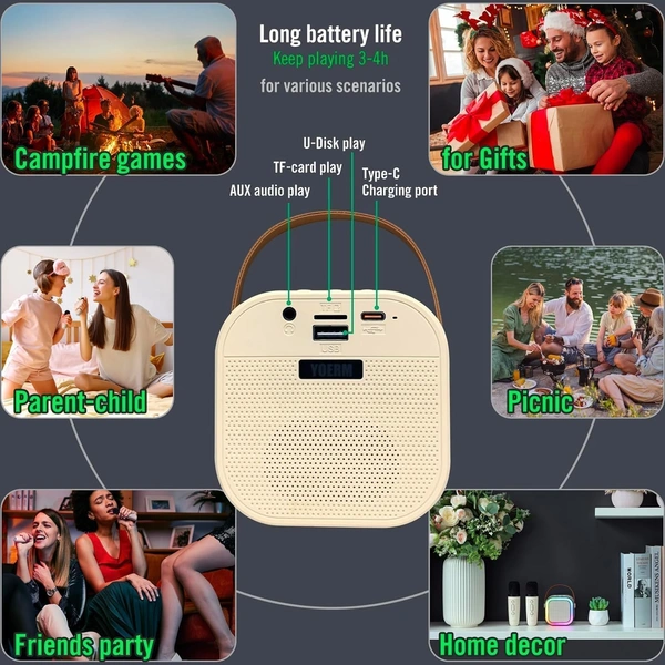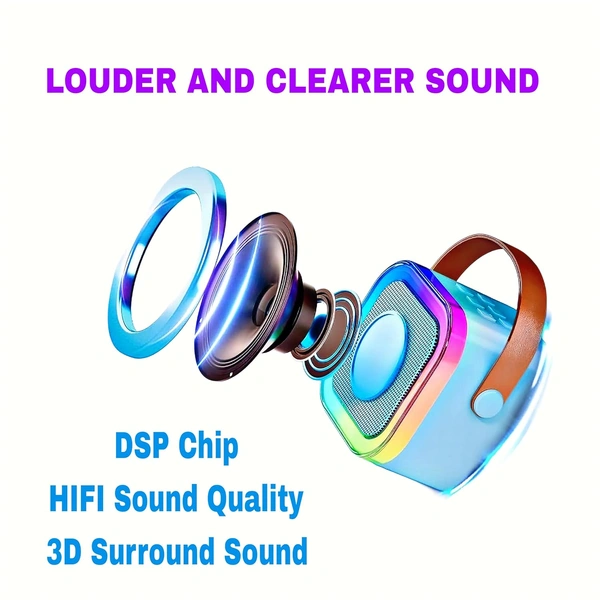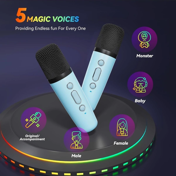MirgIndia G2 Speakar with 2 mic Mini Karaoke Colorful Karaoke Bluetooth Speaker with Stereo Sound, Wireless 2 Mic with 4 Voice Converter, RGB Lights, 5Hrs Non-Stop Music, Multi-Compatibility Modes and Type-C Charging About this item :- Portable Mic: The included rechargable portable mic ensures your voice is heard loud and clear, making it ideal for presentations, karaoke nights, public speaking, and more. The microphone's wireless functionality adds to your convenience and mobility. Voice Changing Mode: Unleash your creativity with 3 voice changing modes, offering a variety of fun and quirky vocal effects adding an element of entertainment to your performances. High-Quality Audio: Immerse yourself in crystal-clear 10W sound output that fills any room. The speaker delivers rich bass, balanced midranges, and crisp highs for an exceptional audio experience. Bluetooth Connectivity: Seamlessly connect your devices using Bluetooth 5.3 technology. Pair your smartphone, tablet, or laptop to the speaker wirelessly and enjoy music or podcasts without the hassle of cords. Diverse Audio Inputs: In addition to Bluetooth connectivity, the speaker features an AUX-in port, TF card slot, and USB port, providing multiple ways to play your music. Dynamic RGB Lights: Elevate your environment with mesmerizing LED lights that create a lively atmosphere for parties or relax with soothing ambient lighting. Long Battery Life: Enjoy extended playtime with the built-in rechargeable battery. Dance the night away or conduct meetings without worrying about running out of power. 5 hours Playing Long Time: This karaoke speaker has a built-in rechargeable battery of 2500mAh that ensures 5 hours of uninterrupted playback time. It is perfect for Birthday parties, Conferences, Classes, or Outdoor activities. This portable Bluetooth speaker and wireless microphone will satisfy all your "happy singing" needs. *Thanks for connecting (Mirgindia)* Thanks So Much Shopping With Mirgindia karolbagh Delhi. *Note - China के मॉल में किसी भी प्रकार की कोई गारंटी / वारंटी नहीं होती. ( चले तो चांद तक ना चले तो शाम तक )* *Always Only Wholesale | Good Quality Product & Long Life* *Sorry For in our Policy 🙏 | SELING USED ITEM | NO WARRANTY | NO GUARANTEE | NO RETURN BACK POLICY | NO REFUND | NO EXCHANGE | DOES BUYER CLAIM REFUND | *।। धन्यवाद ।।*