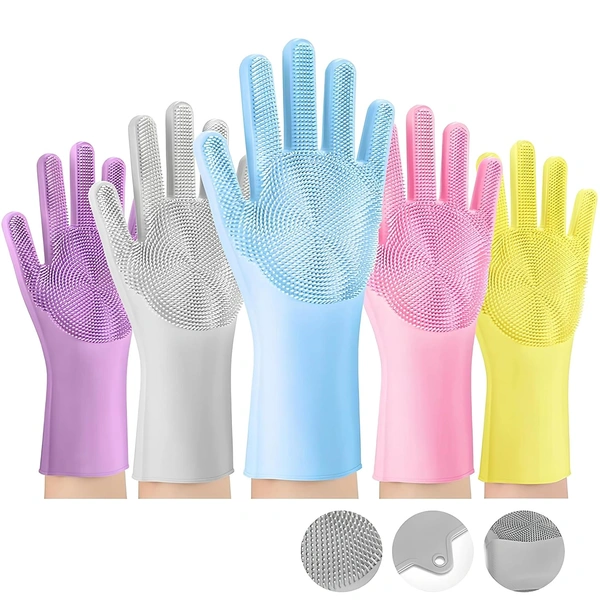 MirgIndia Gloves Silicone for Dish Washing Gloves Magic Silicone Dish Washing Gloves, Silicon Cleaning Gloves, Silicon Hand Gloves for Kitchen Dishwashing and Pet Grooming, Great for Washing Dish, Car, Bathroom (Multicolour, 1 Pair) About this item :- DURABLE AND LONG-LASTING: Silicone dishwashing hand gloves are made with high-quality, durable silicone that resists tearing. Perfect for regular use in tough dishwashing and cleaning tasks HEAT-RESISTANT: These silicone hand gloves are designed to withstand high temperatures (up to a specific temperature like 200°F/93°C), ideal for handling hot water, dishes, and pots WATERPROOF AND LEAK-PROOF: Fully waterproof designed hand gloves prevent water from soaking through the gloves, keeping your hands dry and protected during washing and safe from harsh detergents. TEXTURED GRIP: Features a textured surface or built-in grip pattern on the palms and fingers for better handling of slippery dishes, glasses, and cookware EASY TO CLEAN: Soft and flexible silicone bristles allow easy movement during dish washing, pet grooming, car cleaning. The smooth silicone surface is quick to clean and resistant to stains and odours, ensuring your gloves stay fresh and hygienic MULTIPURPOSE USE: Ideal for dishwashing, but also perfect for cleaning bathrooms, washing fruits and vegetables, cleaning pet hair, and handling hot objects. *Thanks for connecting (Mirgindia)* Thanks so much. Shopping with Mirgindia karolbagh Delhi. *Note - China के मॉल में किसी भी प्रकार की कोई गारंटी / वारंटी नहीं होती ( चले तो चांद तक ना चले तो शाम तक )* *Only Wholesale | Good Quality Product & Long Life* *Sorry For in our Policy 🙏 | No Guarantee | No Warranty | No Return | No Refund | No Exchange 💱 |* *।। धन्यवाद ।।*