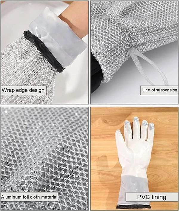 Mirgindia Jali Gloves Dish Washing Aluminium Dishwashing Hand Gloves Non Scratch Wire, Waterproof Home Kitchen Utensils Cleaning Gloves for Washing Dish Easy Rinsing, Reusable Cleans Dishes Pots, Pans, Sinks, ( 1 pieces Pack ) About this item :- · 1. Stainless Steel Wire Mesh – Durable & Efficient Cleaning These dishwashing gloves are made from high-grade stainless steel wire mesh, offering exceptional durability and cleaning power. Designed to tackle stubborn stains, grease, and food residue on utensils, pots, and pans, these gloves make scrubbing effortless. The sturdy wire material maintains its shape and scrubbing ability even after multiple uses. It's ideal for everyday dishwashing or deep cleaning after large meals, festivals, or parties. · 2 Non-Scratch Cleaning – Safe for Most Cookware Surfaces Despite being tough on grime, these wire gloves are gentle on your cookware. The fine mesh design allows powerful cleaning without scratching non-stick coatings, glass, ceramic, or steel surfaces. Whether you're cleaning delicate glassware or heavy iron utensils, you get effective results without damage. · 3. Reusable & Machine Washable – Eco-Friendly & Cost-Effective Unlike disposable scrubbers, these gloves are reusable and machine washable. Just toss them in your washing machine after use to remove grease and debris. They dry quickly and are ready for the next cleaning session. An eco-friendly alternative to sponges and pads, saving money while reducing waste. · 4. Multipurpose Use – From Dishes to Deep Cleaning Tasks These gloves are not limited to dishwashing. Use them for cleaning kitchen sinks, ovens, grills, stovetops, and even bathroom tiles. The flexibility of gloves allows you to reach tight corners and scrub thoroughly with your hands, making them an ideal all-purpose cleaning solution for the entire home. · 5. ️ Ergonomic Fit – Comfortable & Flexible Hand Movement Designed to fit most hand sizes, these gloves provide a snug and flexible fit that moves with your hand. They allow for natural grip and movement, so you can hold utensils, scrub pots, and clean surfaces without discomfort. No slipping or clumsy cleaning—just total control and efficiency. · 6. Secure & Safe – Protects Hands from Hot Water and Grease These wire gloves not only clean effectively but also act as a protective barrier. Shield your hands from hot water, detergent chemicals, and sharp-edged utensils. Great for people who spend a lot of time in the kitchen and want added safety while cleaning tough messes. · 7. Chemical-Free Scrubbing – Clean with Just Water or Soap You don’t need harsh chemicals or abrasive cleaning agents with these gloves. Their powerful scrubbing surface removes dirt and grease even with plain water or mild soap. Ideal for eco-conscious users or homes with children and pets, these gloves support a low-toxicity lifestyle. *Thanks for connecting (Mirgindia)* Thanks so much. Shopping with Mirgindia karolbagh Delhi. *Note - China के मॉल में किसी भी प्रकार की कोई गारंटी / वारंटी नहीं होती ( चले तो चांद तक ना चले तो शाम तक )* *Only Wholesale | Good Quality Product & Long Life* *Sorry For in our Policy | No Guarantee | No Warranty | No Return | No Refund | No Exchange �� |* *।। धन्यवाद ।।*