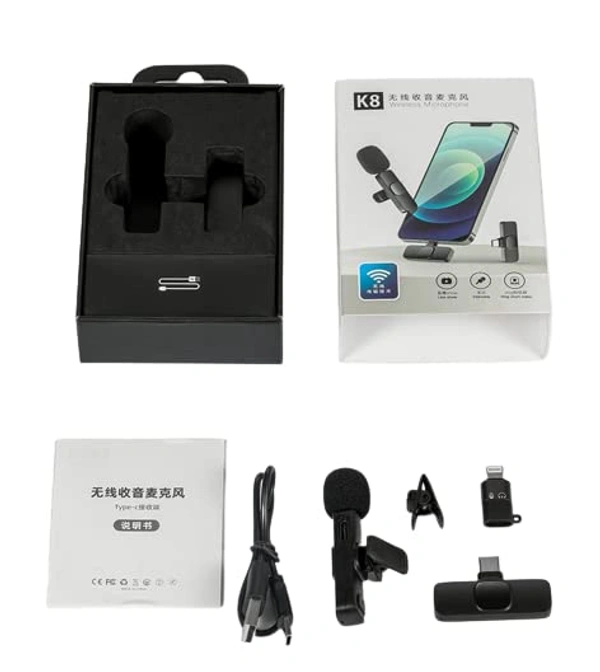 MirgIndia K8 Mic Wireless Microphone, Digital Mini Portable Recording Clip Mic with Plug & Play Mic with 3 receivers Lapel Mic for Andriod/Type-c/iPhone/for Receiver for All Lightning Mobile Phones Camera Laptop for Vlogging YouTube Online Class, Zoom Call About this item :- 【Compatible with iOS & Type C Devices】 wireless lavalier microphone specially designed for iPhone iPad, it can be easily connected and brings you an excellent recording experience.(PS: the latest version of 11 inch and 12.9 inch iPad Pro with type-C port not supported). 【Plug & Play and Auto Pairing】With No App or Bluetooth needed, The wireless microphone for iphone includes microphone and receiver, just clip the microphone to your collar and plug the receiver on your device, they will automatically connectted. Easy for you to play with YouTube/Facebook Live Streaming, TikTok, Vlog, Blog, Podcast, Zoom, Interview and other video recording. 【 Superior Noise Cancellation & Real-time Crystal Voice Syncs】Smars wireless lapel microphone can minimize ambient noise, keep the vocals carried through clearly even amid outdoor surrounding sound disturbances. The lapel microphone also using the real-time auto-sync technology, which extremely reduce the video post-editing. Support Multi-Channel Real-Time Mixing, it can synchronize the background music for phone and human voice in real time 【Widely Working Scenarios】Work for YouTube/Facebook Live Stream, TikTok, Vloggers, Bloggers, YouTubers, Interviewers and other video recording lovers. From now on, enjoy your vlogging life everywhere anytime. 【Only Compatible Light_ning Devices】Lavalier microphone can be used with iPhone7 7 Plus,8 8 Plus,X,XR,XS,XS Max,11 11 Pro,11 Pro Max,12/12 Pro and iPad 2/3/4,iPad Air series,iPadPro Series (Note: Latest versions of 12.9-inch and 11-inch iPad Pros with type-C ports are supported) *Thanks for connecting (Mirgindia)* Thanks so much. Shopping with Mirgindia karolbagh Delhi. *Note - China के मॉल में किसी भी प्रकार की कोई गारंटी / वारंटी नहीं होती ( चले तो चांद तक ना चले तो शाम तक )* *Only Wholesale | Good Quality Product & Long Life* *Sorry For in our Policy 🙏 | No Guarantee | No Warranty | No Return | No Refund | No Exchange 💱 |* *।। धन्यवाद ।।*