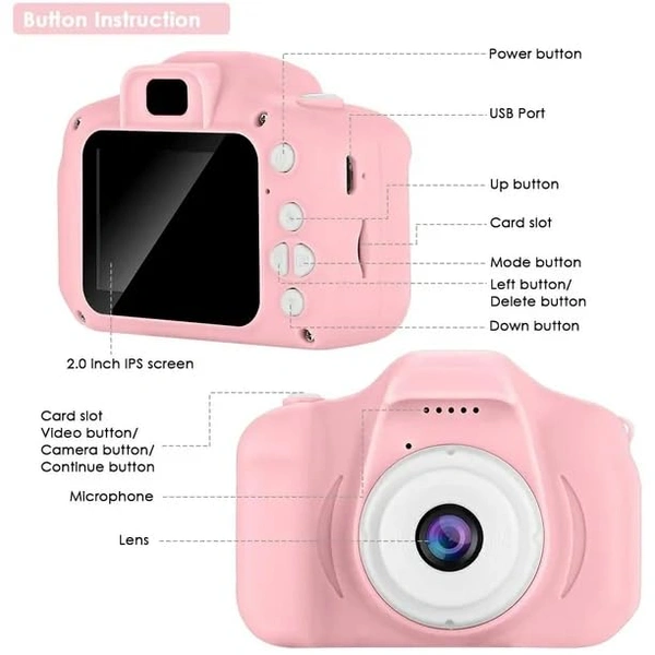 MirgIndia Kids Camera for Girls Boys Digital Camera - 1080P Video, 1200W Photo, 2 Inch IPS Screen, Rechargeable with USB, Portable Fun Camera for Children with Games &... About this item :- 📸 3MP High-Quality Camera: Capture sharp and vibrant images with 3MP resolution, perfect for budding photographers. 🎥 HD 1080P Video Recording: Record fun and memorable moments in clear HD quality for playback and sharing. 🖥️ IPS Display Screen: Features a durable and eye-friendly IPS screen for easy photo and video viewing. 🤳 Selfie Mode: Includes a selfie camera function for kids to capture their own fun moments effortlessly. 🎮 Built-In Games: Keep kids entertained with fun, pre-installed games when they’re not taking photos. 🎀 Attractive Pink Color: Designed in a beautiful pink color that’s perfect for kids who love stylish and vibrant gadgets. 🔋 Rechargeable Battery: Enjoy hours of fun with the built-in rechargeable battery, eliminating the need for constant replacements. 🎁 Adorable Gift :- Perfect Gift for Kids: Lightweight, portable, and easy to use—ideal for birthdays, holidays, or any special occasion. SD Card Required: Note that an SD card (not included) is required to store photos and videos, providing additional space for all their creative work. SD card is not included and must be purchased separately for photo and video storage. *Thanks for connecting (Mirgindia)* Thanks so much. Shopping with Mirgindia karolbagh Delhi. *Note - China के मॉल में किसी भी प्रकार की कोई गारंटी / वारंटी नहीं होती ( चले तो चांद तक ना चले तो शाम तक )* *Only Wholesale | Good Quality Product & Long Life* *Sorry For in our Policy 🙏 | No Guarantee | No Warranty | No Return | No Refund | No Exchange 💱 |* *।। धन्यवाद ।।*