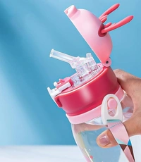 MirgIndia Kids Water Bottle Kids Portable Sipper Water Bottle Cartoon Print for Children's 600ml Capacity for School, Shopping, Sports, Travel Water Bottle Sipper Bottle for Kids (Multi Color) (tritan matariel) About this item :- Kid-friendly Design: Plastic sipper water bottle with straw and strap, perfect for school kids. Ample Capacity: 600 ml (approx. 20 oz) capacity, ideal for staying hydrated throughout the day. he charming deer horn design adds a touch of whimsy and imagination to the water bottle, making it appealing to children. Crafted from sturdy plastic material, this water bottle is designed to withstand the demands of active children's lifestyles, ensuring long-lasting use. Wide Mouth Opening: The wide mouth opening allows for easy filling, cleaning, and adding ice cubes, making it a versatile option for all your hydration needs. Durable Construction: Built to withstand everyday wear and tear, our water bottle is shatterproof and resistant to cracks, ensuring long-lasting use. An excellent present for your toddlers and school-age children. Environmentally Friendly Design: Constructed from premium, BPA-free materials. food-safe substance. Our water bottle is an eco-friendly option that helps cut down on waste from single-use plastics. *Thanks for connecting (Mirgindia)* Thanks so much. Shopping with Mirgindia karolbagh Delhi. *Note - China के मॉल में किसी भी प्रकार की कोई गारंटी / वारंटी नहीं होती ( चले तो चांद तक ना चले तो शाम तक )* *Only Wholesale | Good Quality Product & Long Life* *Sorry For in our Policy 🙏 | No Guarantee | No Warranty | No Return | No Refund | No Exchange 💱 |* *।। धन्यवाद ।।*