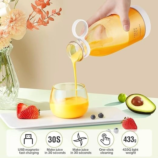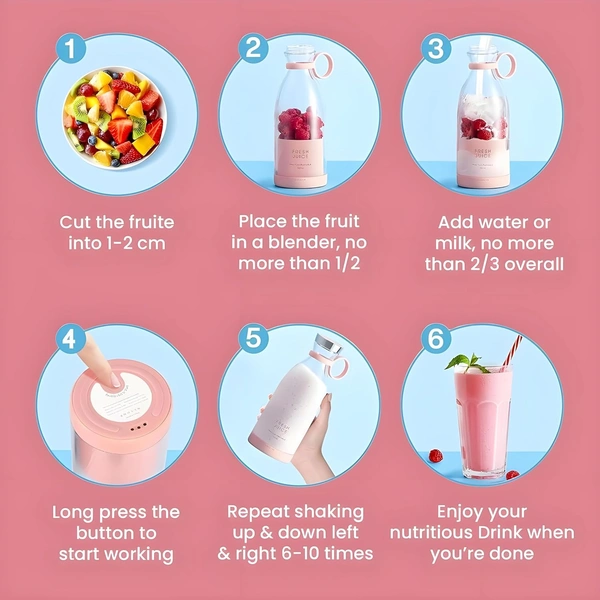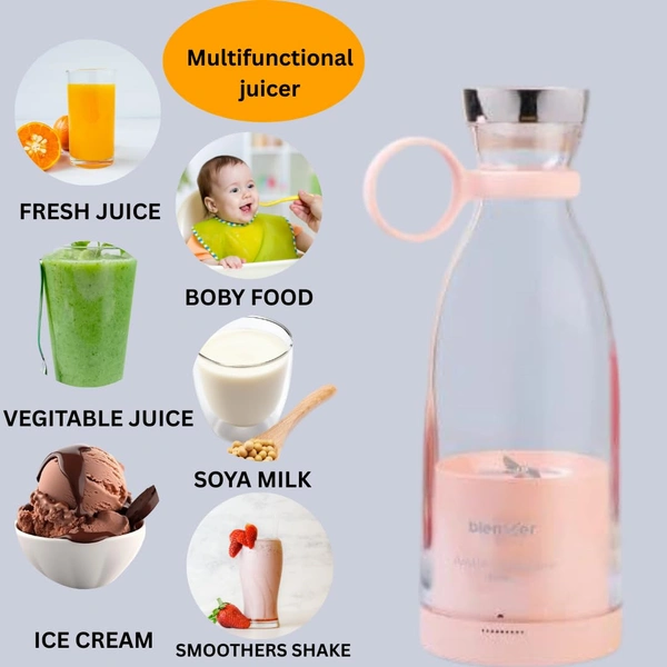 MirgIndia Mini Bottle Juicing Portable Juicer Cup with Handle, 350mL Mini Blender USB Electric Juicer Cup Rechargeable Juicing Bottle for Shakes Milkshake Fresh Juice ( Mix Colour ) About this item :- The portable blender for milkshakes and smoothies has a powerful motor base and 4 food-grade stainless steel blades.The Stainless Still of cutter head made with food-grade electrolysis technology is durable and has excellent mixing ability, allowing the pulp to be quickly broken without losing dietary fiber. The portable USB rechargeable blender equipped with a built-in rechargeable battery makes 8-12 cups per charge. The mini blender is as easy to carry around as a water bottle that can hold 350ml of juice. It is suitable for home, work, school or travel. The juicer cup can be opened up and down. You can open the cap to drink and open the bottom to clean.This juicer is simple to operate, with only one button.Double click the switch to turn on the power.When working,you can shake the bottle by holding it at 45 degrees for better mixing. All parts except for the motor base are dishwasher safe. If you want to mix on the go, our Portable Blender will be your closest friend. It comes with a wireless charging station that can be charged by any USB device, such as a power bank, laptop, or PC. The working time is 20-30 Seconds per cycle. Small USB blender uses food-grade non-toxic and environmentally friendly ABS materials. Juice blender bottles choose food grade bottle material, far from BPA, health and hygiene, this smoothie blender extracts healthy nutrition from fruits and vegetables you can enjoy fresh nutrition and a good leisure time. *Thanks for connecting (Mirgindia)* Thanks so much. Shopping with Mirgindia karolbagh Delhi. *Note - China के मॉल में किसी भी प्रकार की कोई गारंटी / वारंटी नहीं होती ( चले तो चांद तक ना चले तो शाम तक )* *Only Wholesale | Good Quality Product & Long Life* *Sorry For in our Policy 🙏 | No Guarantee | No Warranty | No Return | No Refund | No Exchange 💱 |* *।। धन्यवाद ।।*
