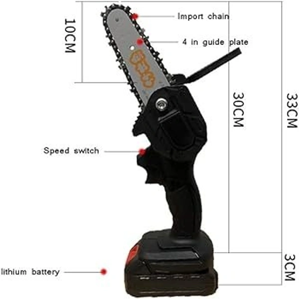 Mini Electric ChainSaw For Wood 48V 4-Inch Cordless Chainsaw | 48V Battery-Powered Handheld Chainsaw | Lightweight Electric Chainsaw for Tree, Branch, Wood & Garden Cutting. About this item :- ✅ Efficient & Fast Cutting – This 4-inch cordless chainsaw is ideal for tree pruning & firewood cutting, slicing through 2-4 inch branches in just 5 seconds with its high-powered 24V motor. ✅ Lightweight & One-Hand Operation – Weighing only 0.7kg (1.54 lbs) and measuring 33cm (13 inches) in length, this mini chainsaw is easy to control, reducing fatigue even during prolonged use. ✅ Long Battery Life – Comes with a 1500mAh rechargeable lithium battery that fully charges in 1-2 hours, providing up to 20 minutes of continuous cutting. ✅ Durable & Smooth Cutting – The deeply quenched chain and wooden teeth design enhance cutting efficiency, while the integrated guide plate ensures heat dissipation, durability, and resistance to wear. ✅ Ergonomic & User-Friendly – Designed with an anti-slip handle for comfortable grip, making it perfect for women, elderly users, and beginners to operate with ease. ✅ Complete Package – Includes 1 × 4-inch Mini Chainsaw, 1 × 1500mAh Battery, 1 × Chain, 1 × Charger, 1 × Screwdriver, 1 × Wrench, and 1 × User Manual, all neatly stored in a portable toolbox for easy carrying. *Thanks for connecting (Mirgindia)* Thanks so much. Shopping with Mirgindia karolbagh Delhi. *Note - China के मॉल में किसी भी प्रकार की कोई गारंटी / वारंटी नहीं होती ( चले तो चांद तक ना चले तो शाम तक )* *Only Wholesale | Good Quality Product & Long Life* *Sorry For in our Policy 🙏 | No Guarantee | No Warranty | No Return | No Refund | No Exchange 💱 |* *।। धन्यवाद ।।*