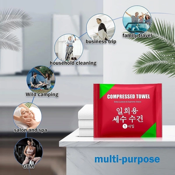 MirgIndia Magic Tablet Towel Tissues Paper Disposable Pure Cotton Compressed Portable Outdoor Travel Facial Bath Towel Water Wet Wipes (Big Size) Towel size 70 * 140 (Pack Of 1 ) About this item :- Disposable Compressed Towels: Doyelex portable compressed bath towel tablets, the compressed size is only 0.8x3 Inch, individually wrapped, small enough to fit in your pocket or bag without taking up too much space. Easy to use: Add a little cold or warm water, and it will expand rapidly in a few seconds. After unfolding, it will become a large towel with an approx. size of 108*66 cm. Soft Skin Friendly: It is a skin-friendly and comfortable face cleansing products and suitable for all skin types. Comfortable Design: The surface of travel towel/ bath towel is very good design, 100% natural cotton. These towels absorb water quickly, and have good air permeability, which does no harm to the skin. Durable and Reusable: Our towels are thicker and more spacious than typical disposable options, allowing for multiple uses after a simple wash, providing a cost-effective and eco-friendly alternative. Superior Absorbency: These towels are engineered for quick drying and boast impressive water absorption capabilities, ensuring you stay comfortably dry whether you're at the beach or in a hotel room. *Thanks for connecting (Mirgindia)* Thanks so much. Shopping with Mirgindia karolbagh Delhi. *Note - China के मॉल में किसी भी प्रकार की कोई गारंटी / वारंटी नहीं होती ( चले तो चांद तक ना चले तो शाम तक )* *Only Wholesale | Good Quality Product & Long Life* *Sorry For in our Policy 🙏 | No Guarantee | No Warranty | No Return | No Refund | No Exchange 💱 |* *।। धन्यवाद ।।*