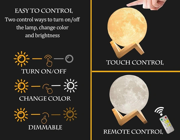MirgIndia Moon Lamp with Touch Control 3D Moon Night Lamp – Rechargeable with 7 Color Changing Features, 15CM – Elegant Plastic Design for Beautiful Indoor Lighting in Bedrooms and Kids' Rooms | Gifts for Woman | Valentine Gift About this item :- Lunar Magic at Your Fingertips: 🌕 Immerse yourself in the celestial beauty with Desidiya's 3D 7 Color Changing Moon Night Lamp, a captivating addition to your bedroom, providing a touch of lunar magic to both adults and kids. Mesmerizing Color Spectrum: 🌈 Enjoy seven enchanting color options that seamlessly transition, creating a mesmerizing and soothing atmosphere. Set the mood according to your preferences, transforming your space into a tranquil haven. Rechargeable Convenience: 🔋 Designed for practicality, this moon lamp is rechargeable, eliminating the need for constant battery replacements. Simply recharge and enjoy the ethereal glow whenever the moonlight calls. Perfect Bedroom Companion: 🛌 The 15cm moon lamp is the ideal size for bedroom decor, radiating a gentle, ambient light that adds a touch of elegance to your personal space, fostering a serene environment for relaxation and sleep. Artistic Indoor Lighting: 🏡 Elevate your home with this beautiful indoor lighting piece. The 3D moon design not only provides functional lighting but also serves as an artistic statement, enhancing the aesthetic appeal of any room. Thoughtful Gift: 🎁 Packaged as a set of one, this moon night lamp makes for a thoughtful and unique gift for loved ones, bringing the serene beauty of the moon into their homes, creating a celestial ambiance that resonates with both adults and kids alike. *Thanks for connecting (Mirgindia)* Thanks so much. Shopping with Mirgindia karolbagh Delhi. *Note - China के मॉल में किसी भी प्रकार की कोई गारंटी / वारंटी नहीं होती ( चले तो चांद तक ना चले तो शाम तक )* *Only Wholesale* *Good Quality Product & Long Life* *Sorry For in our Policy 🙏 | No Guarantee | No Warranty | No Return | No Refund | No Exchange 💱 |* *।। धन्यवाद ।।* 10438