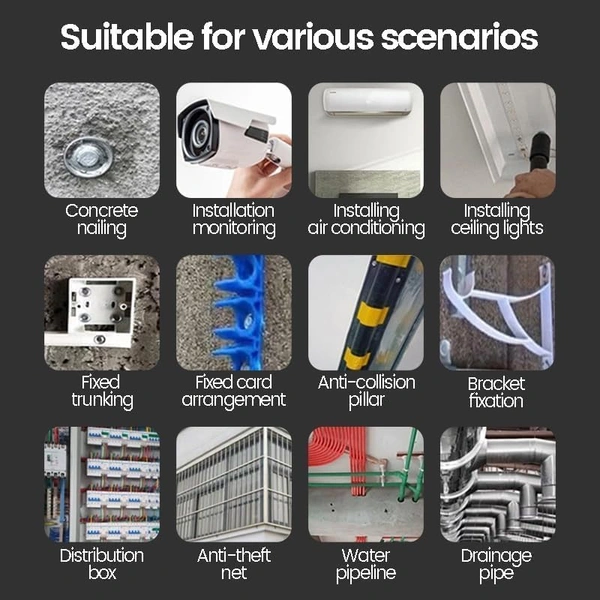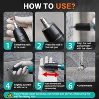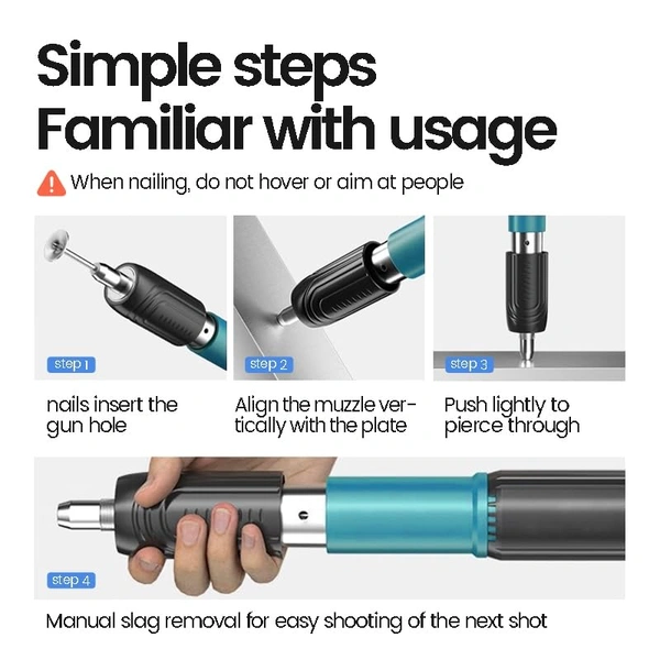 MirgIndia Nail Gun Tool | Mini Nail Fixation Tool | Portable Mini Nail Shooting Machine | Nail Wall Fixing Tool | Nail wall Fixing Power Tool Adjustable Speed | Household Woodworking Accessories with 16 Nail.. About this item :- ✦High -quality & Double silencer: This strong power portable hand power nail gun is made of solid metal, with a non-slip rubber handle and non-slip hood, low noise, safe and Undestroyable. The thickened steel dispeller will reduce noise, safer, and more comfortable building environments without disturbing family or neighbors. Widely Applications: This hand power portable nail gun is suitable for concrete walls, camera installation, electric box installation, water and power installation, air conditioning installation and hanging picture frame, pipeline installation, wire binding, etc. ✦Strong Penetration:The concrete nail gun with strong penetration force, Concrete nailer only takes 0.1s to pierce a 3mm steel plate in one step. 3 gears adjustable power, different gear the power effect is obviously different. It can be adjusted according to different construction intensity requirements. ✦Easy Operation: This lightweight concrete nail gun is powered by hand. Easy to use, just five simple steps: 1. Wear protective glasses, gloves, and earplugs; 2. Choose the nail; 3. Nail gun vertically at the workplace ready to shoot; 4. Vertical force into the wall; 5. Hold the muffler cover, and compress it many times. If occurs can't work, please delete the residue before trying a few more nails. 5. Nail gun wide range of applications: camera installation, electric box installation, plumbing installation, air conditioning installation and hanging picture frames, multifunctional shelves, small distribution boxes, pipe installation, cable bundling, etc. *Thanks for connecting (Mirgindia)* Thanks So Much Shopping With Mirgindia karolbagh Delhi. *Note - China के मॉल में किसी भी प्रकार की कोई गारंटी / वारंटी नहीं होती. ( चले तो चांद तक ना चले तो शाम तक )* *Always Only Wholesale | Good Quality Product & Long Life* *Sorry For in our Policy 🙏 | SELING USED ITEM | NO WARRANTY | NO GUARANTEE | NO RETURN BACK POLICY | NO REFUND | NO EXCHANGE | DOES BUYER CLAIM REFUND | *।। धन्यवाद ।।* 10478
