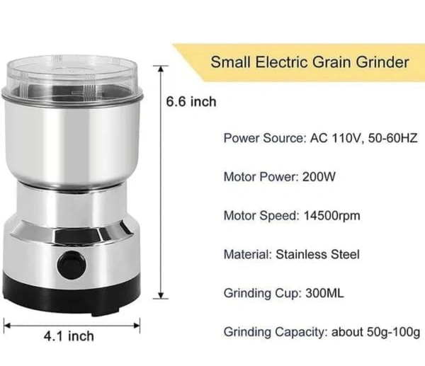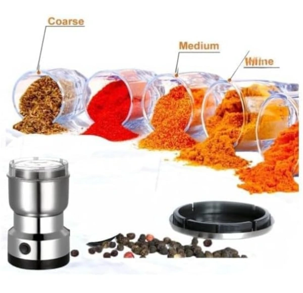 MirgIndia Nima Mixer Grinder Smash Machine Stainless Steel Multifunctional Electric Grinder & Coffee Maker Mini Spice, Dry Masala Grinder for Beans, Nuts & Grains, Household Mixer Grinder (Silver) About this item :-- POWERFUL MOTAR :- Delivers quick and efficient grinding for various ingredients. Equipped with a powerful motor to quickly grind spices, coffee beans, dry masalas, and more. HIGH QUALITY MATERIAL :- Durable Stainless Steel: Built to last with high-quality, corrosion-resistant stainless steel. Electric Mixer Grinder offers long-lasting durability and resistance to wear and tear. MULTIPURPOSE USE – Perfect for grinding coffee beans, spices, dry masalas, nuts, and small grains, offering versatile kitchen utility.This superior-performance electric grinder is perfect for grinding coffee beans, spices, nuts, grains, and more, making it ideal for everyday use in your kitchen. COMPACT DESIGN – Its sleek design and ergonomic handle make it comfortable to use. Mini-sized grinder is space-saving and fits perfectly in any kitchen, making it easy to store and use. PERFORMANCE : This bean grinder has great grinding performance and can grind practically all types of beans.while the durable stainless steel construction ensures long-lasting performance.Can be used for a variety of ingredients, including masalas and dry herbs. *Thanks for connecting (Mirgindia)* Thanks So Much Shopping With Mirgindia karolbagh Delhi. *Note - China के मॉल में किसी भी प्रकार की कोई गारंटी / वारंटी नहीं होती. ( चले तो चांद तक ना चले तो शाम तक )* *Always Welcome Only Wholesale* *Good Quality Product & Long Life* *Sorry For in our Policy 🙏 | SELING USED ITEM | NO WARRANTY | NO GUARANTEE | NO RETURN BACK POLICY | NO REFUND | NO EXCHANGE | DOES BUYER CLAIM REFUND | *।। धन्यवाद ।।* 10387