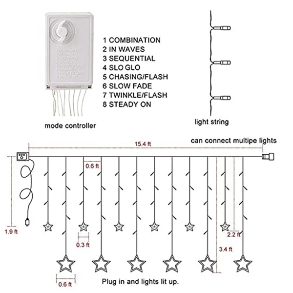 MirgIndia Stars Light 6×6 138 LED Multi-Color Star Curtain LED Light – 2.5 Meter, 138 LEDs, 6+6 Star Design for Diwali, Christmas, Wedding & Home Decoration. About this item :- Vibrant and Extensive: Features a generous length with colorful LED star lights to brighten any space. USB Convenience: Powers easily via any USB port, eliminating the need for batteries and ensuring energy efficiency. Versatile Shaping: Flexible string allows for creative draping on walls, windows, furniture, and as part of DIY decorations. Ideal for Celebrations: Perfect for adding a festive touch to room décor, home accents, parties, weddings, and holidays. Safe and Long-Lasting: Low heat emission for safe extended use; durable construction ensures enjoyment for many events. *Thanks for connecting (Mirgindia)* Thanks so much. Shopping with Mirgindia karolbagh Delhi. *Note - China के मॉल में किसी भी प्रकार की कोई गारंटी / वारंटी नहीं होती ( चले तो चांद तक ना चले तो शाम तक )* *Only Wholesale | Good Quality Product & Long Life* *Sorry For in our Policy 🙏 | No Guarantee | No Warranty | No Return | No Refund | No Exchange 💱 |* *।। धन्यवाद ।।*