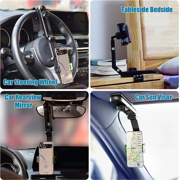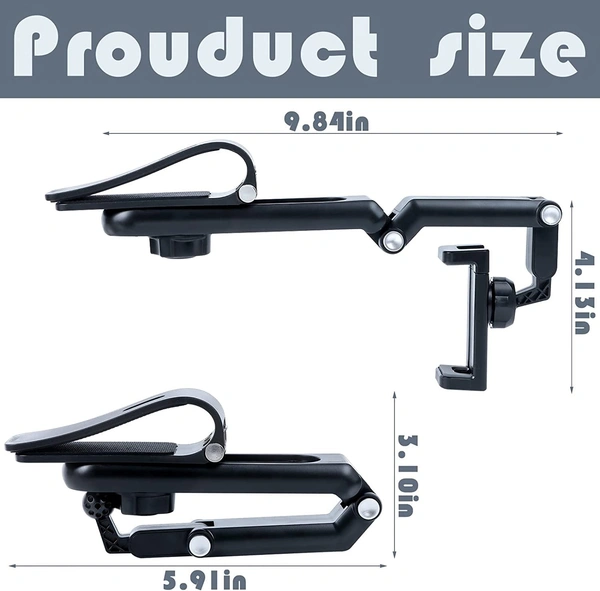 MirgIndia Sun Visor, 1080° Rotatable and Foldable Dashboard Phone Holder for Car, Universal Adjustable Spring Clip Car Cell Phone Stand for All Phone, Car Accessories. About this item :- 【Durable Stable Phone Mount】Made of premium ABS and metal material, durable yet firm. Non-slip thickened silicone pad and curved base design, it's not easy to scratch, Most importantly, a Cell Phone Stand can be attached to the car dashboard, car sun visor, steering wheel, or curved surface and firmly hold your device to prevent them from scratching & dropping. Stylish looks design, simple and practical. 【Easy To Adjust & Multiple Viewing Angle】The new upgrade cell phone holder can fully 360-degree rotation provide you with the best viewing angle to meet the needs of different sightlines. Meanwhile, this car phone mount is designed with mechanical joints, adjustable arm support horizontal and vertical screen switching, and the navigation angle can be adjusted at will so that you can enjoy a more relaxed, comfortable, and safe driving experience. 【Easy To Operation】Long arm phone holder is easy to install and remove. You to lock or release your phone with just one hand operation, saving time and effort, and cell phone holders can be hidden when not in use, so they will not interfere with your sight and affect driving safety. 【Perfect Protection】Say goodbye to plastic or metal phone holders that can easily scratch your hands. This new cell phone holder for cars adds an upgrade high-density silicone material with excellent protection. When not in use the car phone stand can fold flat and easily fits in a center console, glove box, or door pocket to keep it out of the way. 【Wide Application】Compatible with all mobile phones and devices with a width of 50mm-100mm/2.0inch- 4.0inch. The adjustable telescopic arm makes you able to adjust your phone to any angle and any place, it's a good choice for most cars, pickup trucks, SUVs, trucks, taxis. New Year idea gifts for family and friends, birthday gifts, or car gifts for other occasions. *Thanks for connecting (Mirgindia)* Thanks so much. Shopping with Mirgindia karolbagh Delhi. *Note - China के मॉल में किसी भी प्रकार की कोई गारंटी / वारंटी नहीं होती ( चले तो चांद तक ना चले तो शाम तक )* *Only Wholesale | Good Quality Product & Long Life* *Sorry For in our Policy 🙏 | No Guarantee | No Warranty | No Return | No Refund | No Exchange 💱 |* *।। धन्यवाद ।।* 10264
