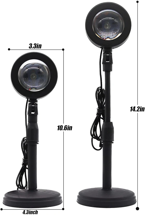 MirgIndia Sunset Lamp Projector 16 Color LED Light Desk Lamp Rainbow Night Light 360° Rotation Romantic Mood Sunlight for Bedroom, Party, Photography with Remote About this item :- 🌈 Vibrant 16-Color Options: Featuring 16 stunning RGB colors and multiple lighting modes, this upgraded sunset lamp lets you set the perfect mood with just a remote. 🔄 Full 360° Rotation: Easily adjust the angle and projection size with the flexible, rotating lamp head—ideal for creating dynamic lighting effects. 🎮 Easy Remote Control: Customize colors, brightness, and effects effortlessly from a distance with the included remote for a seamless experience. 🔍 Crystal-Clear Projection: Designed with a high-quality HD crystal lens, ensuring sharp, vibrant light transmission and a wide projection range. 📷 Perfect for Photography & Decor: Elevate your selfies, vlogs, and home ambiance with mesmerizing sunset hues—great for bedrooms, living rooms, and event spaces. 🎁 Thoughtful Gift Choice: A stylish and unique lighting accessory that adds warmth to any space, making it an ideal gift for friends, family, and loved ones. 16 Different Colors in One Lamp for Choose - This Sunset Lamp is our newest design which can meet all your lighting needs. You don't have to buy several lamps for the colors, one is enough. Thanks for combination of art and technology, our Sunset Projection Lamp has Diverse Functions but also easy to use. Various needs can be achieved with one button. Just a click, you can see any color right before your eyes. 4 Mode setting - The upgraded version of the sunset lamp has 4 mode settings: Jump Effect/Stobe Effect/Gradient Effect/Smooth Gradient, and led lights can be controlled by remote control. You can add more atmosphere to your valentine date at any time. HD Crystal Lens - The Sunset Projection Lamp has an HD Thickened crystal lens. strong light transmission and refraction wider light-emitting surface, farther distance, and larger projection range. Make more beautiful night lights effect. Energy-saving and 50000 hours long life span with top-quality LEDs. 360°Angle Adjustable - Sunset Lamp contains 6.6ft long USB cable with switch, the head can be rotated 360 degrees, The size and shape of the halo can be adjusted by rotating the lamp head to meet your lighting needs. Widely Use - The soft sunset light is great for Night Lighting /Photography/Vlog/Selfie/ Party/ Valentine's Day/Anniversary celebrations. Suitable for Living room, bedrooms, garden decorating, creating a different sunset projector light atmosphere, let you enjoy your leisure time and your family.it is an amazing gift for family and friends. *Note - China के मॉल में किसी भी प्रकार की कोई गारंटी / वारंटी नहीं होती ( चले तो चांद तक ना चले तो शाम तक )* *Thanks for connecting (Mirgindia)* Thanks so much. Shopping with Mirgindia karolbagh Delhi. *Only Wholesale | Good Quality Product & Long Life* *Sorry For in our Policy 🙏 | No Guarantee | No Warranty | No Return | No Refund | No Exchange 💱 |* *।। धन्यवाद ।।* 10375