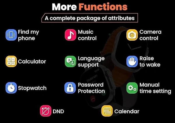 MirgIndia T900 Ultra 2 Smart Watch Smart Watch, T 900 Ultra Smartwatch, 2.09" & iOS – Full Touch Display | Fitness Tracker with Heart Rate, Step Counter, Sleep Monitor, Notifications | Stylish Sports Watch Orange Strap for Men & Women About this item Smart Watch for men : Men and women anyone can wear this watch. BT Calling Smart Watch : Bluetooth calling with Active 2.0 and full control over volume and vibration settings for a customized calling experience. Health and Activity Trackers : The new Active 2.0 smartwatch has various health tracking features like blood oxygen, blood pressure, heart rate, breathing training, temperature Wireless Charging : With wireless charging solution making it easier than ever to keep your device powered. T10 Ultra Smartwatch Black 2.09" Big Screen, Calling, Wireless Charging, Sleek Design, Metal Body with Activity Tracker. *Thanks for connecting (Mirgindia)* Thanks so much. Shopping with Mirgindia karolbagh Delhi. *Note - China के मॉल में किसी भी प्रकार की कोई गारंटी / वारंटी नहीं होती ( चले तो चांद तक ना चले तो शाम तक )* *Only Wholesale* *Good Quality Product & Long Life* *Sorry For in our Policy 🙏 | No Guarantee | No Warranty | No Return | No Refund | No Exchange 💱 |* *।। धन्यवाद ।।* 10092