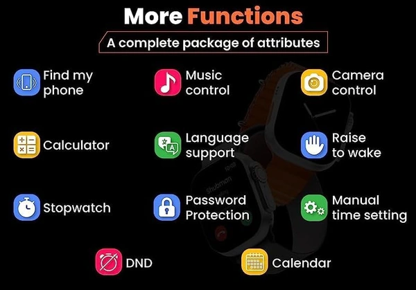 MirgIndia T800 Ultra Smartwatch Series Big 1.9inch Display Smart Watch with Bluetooth Calling, Voice Assistant & Bluetooth Calling, Health Tracking 123 Sports Modes, 8 Unique UI Interactions, SpO2... About this item :- DISPLAY: Massive 1.99-inch HD touchscreen with vibrant colours and customisable watch faces for enhanced visibility and style HEALTH FEATURES: Comprehensive health monitoring with heart rate sensor, blood pressure tracking, and sleep analysis functionality CONNECTIVITY: Built-in Bluetooth calling capability with AI voice assistant, inbuilt mic and speaker for hands-free operation SMART NOTIFICATIONS: Receive alerts for messages, calls, and social media updates from WhatsApp, Facebook, and Twitter DURABILITY: sturdy black silicone band and wireless charging support for convenient daily use. *Thanks for connecting (Mirgindia)* Thanks so much. Shopping with Mirgindia karolbagh Delhi. *Note - China के मॉल में किसी भी प्रकार की कोई गारंटी / वारंटी नहीं होती ( चले तो चांद तक ना चले तो शाम तक )* *Only Wholesale | Good Quality Product & Long Life* *Sorry For in our Policy 🙏 | No Guarantee | No Warranty | No Return | No Refund | No Exchange 💱 |* *।। धन्यवाद ।।* 10122