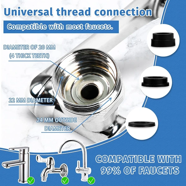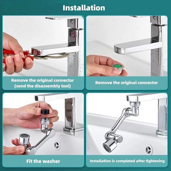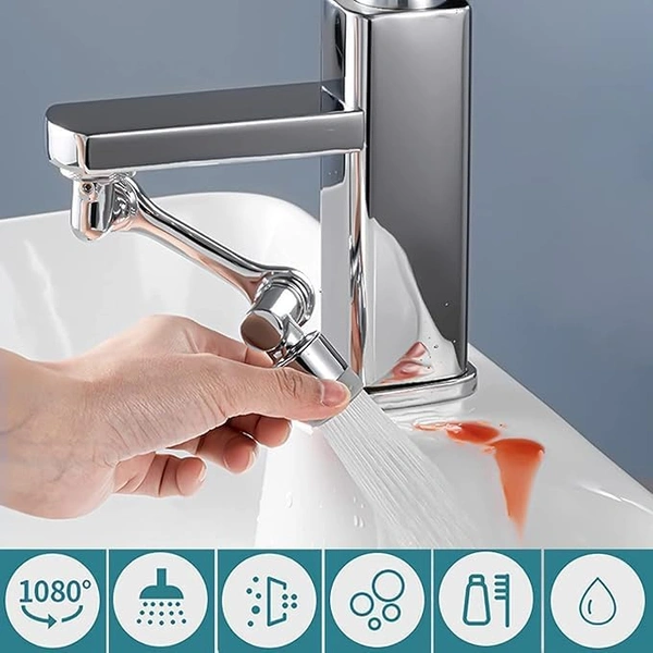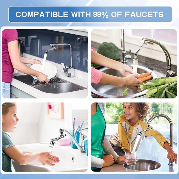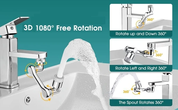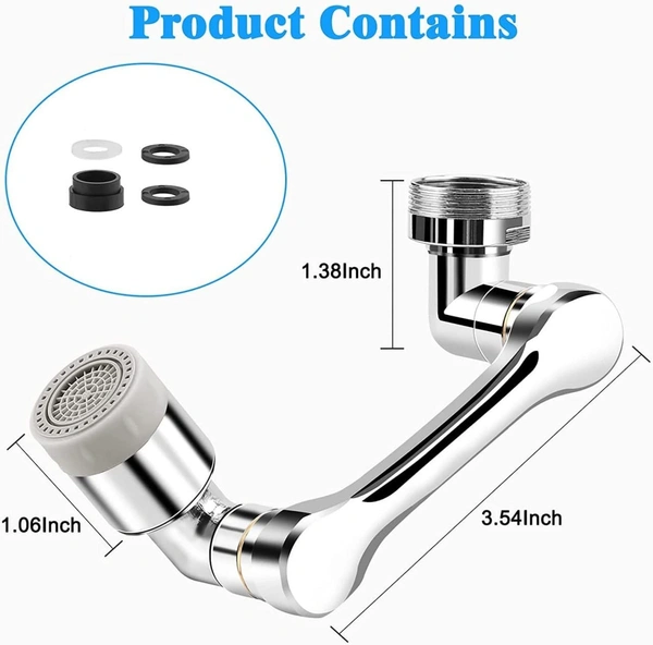 MirgIndia Tap Multi-Functional Extension 1080° Degree Swivel Aerator Rotatable Multi-Functional Extension Faucet, Extender for Taps, Tap Extender for Kitchen Sink And Wash Basin with 2 Modes Splash. About this item 1080° Rotating Filter Faucet Aerator : Kitchen/bathroom sink sprayer attachment has 3 joints rotation at 360 degree. Convenient for dish washing, hard-to-reach corner sink cleaning. Free your hands in face/eye washing, tooth brushing and hair washing. High quality filter parts brings cleaner water. Add fountain effect to basin tap, kids would be happy reaching hands under bubble spray 2-Mode Outlet & Space-saving Sink Tap Extender : Simply rotate rubber ring on aerator to switch bubble outlet to power shower mode, fast rinsing off stains on surface of fruits and vegetables. Non-slip design makes operation easier, even with bubbles on your hands. Ball joint on aerator also allows you to change directions quickly. Innovative Design : Our new rotating faucet aerator is designed for maximum versatility. With 1080° all-round rotation and a removable aerator and eyewash, it can reach every corner of your sink with ease. Easy Installation Within 5 Minutes : No plumbing experience required! Our swivel sink faucet bubbler can be installed in just two minutes without any special tools. And, all necessary materials are included with each purchase. The rotation faucet extender is compatible with most bathroom, kitchen and laundry sink faucets. The rotatable faucet extender fit for 3 different design thread, Male 15/16”-27T, Female 55/64”-27T and Female G1/2 thread faucet. Omnidirectional Rotation : The large angle rotation makes the 1080 ° faucet adapter easy to wash face and eyes. This faucet eye washer has 3 flexible articulating parts, which can be adjusted 360 degrees in all directions, can be easily bent or folded and can reach every corner of the sink for easy cleaning. *Thanks for connecting (Mirgindia)* Thanks so much. Shopping with Mirgindia karolbagh Delhi. *Note - China के मॉल में किसी भी प्रकार की कोई गारंटी / वारंटी नहीं होती ( चले तो चांद तक ना चले तो शाम तक )* *Only Wholesale* *Good Quality Product & Long Life* *Sorry For in our Policy 🙏 | No Guarantee | No Warranty | No Return | No Refund | No Exchange 💱 |* *।। धन्यवाद ।।* 10155