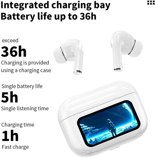 MirgIndia Touch Screen TWS ANC | TWS Earbuds | HD Touch Display | 32dB ANC | Transparency Mode | 40 Hrs Playtime | AI-ENC Quad Mics | Find My Earphones | Bluetooth 5.4 | 4 EQ Modes | Smart Touch Display True Wireless Buds | Type-C Fast Charging ( White Colour ) About this item :- India's First TWS With On-Case Display: Introducing the smart fusion of lifestyle and utility with Screen TWS. These bluetooth earbuds comes with a touch screen case with unlimited features allowing you to choose convenience 32 db ANC + ENC Technology That Shuts The Rest: Escape the chaos, embrace the music. Our tws earbuds with ANC+ENC technology are your ticket to serene listening. It comes with 2 modes- ANC & transparency mode to switch between your listening experience Smart Case To Access Everything: screen tws wireless earbuds come with a digital smart case by which you can control volume, play/pause music, play previous/next track, change wallpapers, and enable noise reduction & music equalizer. It also has features like Flashlight, camera, alarm settings, date/time settings, language, brightness, etc Convenient Type C Charging: Effortless charging meets modern convenience with Type-C charging in our latest screen earbuds. Enjoy quick, hassle-free recharges that keep you plugged into your music without missing a beat Most Advanced And Latest Bluetooth V5.4: Step into the future of wireless audio with our latest and most advanced Bluetooth v5.4 in ear earbuds. Enjoy seamless connectivity, 10 m range, and a truly immersive listening experience Crisp, Clear And Hassle-Free Calling: Experience crystal-clear calls on the go with our screen earbuds bluetooth wireless technology featuring an inbuilt mic. Now Stay connected effortlessly while enjoying immersive sound quality while calling or listening to music *Thanks for connecting (Mirgindia)* Thanks so much. Shopping with Mirgindia karolbagh Delhi. *Note - China के मॉल में किसी भी प्रकार की कोई गारंटी / वारंटी नहीं होती ( चले तो चांद तक ना चले तो शाम तक )* *Only Wholesale* *Good Quality Product & Long Life* *Sorry For in our Policy 🙏 | No Guarantee | No Warranty | No Return | No Refund | No Exchange 💱 |* *।। धन्यवाद ।।* 10345