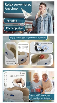 MirgIndia Neck Pillow Massager for Travel | Pure Memory Foam for Neck Rest Support Pain Relief Rechargeable Pillow for Airplane,Travelling,Home... About this item :- 3 massage mode: This neck massager provides 3 modes optional (Massage+Vibration+Heat)。 And the massage has 3 strengths levels, you can get the suitable pressure to relieve muscle pains.The clever bidirectional kneading nodes ensure endless comfort and massage pleasure,awakening your physical and mental vitality and keeping you in the best condition. Memory Foam Neck pillow: We use 100% pure memory foam, 5 seconds rebound technology, comfortable and durable, relieve fatigue, and achieve complete relaxation. U-shape Ergonomic Design: The overall U-shaped ergonomic curve design fits the neck and provides 360° surrounding head, and the M-shaped arc of the back neck protects the neck. It comfortably supports the head and neck without compression. The curve of the head and neck does not compress the back of the head, and the two sides do not squeeze to protect the face. The lock of the Hoodie can easily adjust the tightness. Neck Massager with Heat: The built-in infrared heating lamp can imitate the 96.8℉of human hand, feel the warm current across the cervical spine,Heating therapy assisted massage, relieve fatigue and promote blood circulation. Airplane Travel Assentials:The travel pillow can relieve neck pain during sedentary travel and promote blood circulation. Not only can be used for airplanes, trains, cars, but also for side sleeping in the office, watching TV on the bed or sofa at home, you can prepare this neck pillow for your parents, relatives, friends and colleagues, it is a healthy gift full of love. *Thanks for connecting (Mirgindia)* Thanks so much Shopping with Mirgindia karolbagh Delhi. *Note - China के मॉल में किसी भी प्रकार की कोई गारंटी / वारंटी नहीं होती ( चले तो चांद तक ना चले तो शाम तक )* *Only Wholesale* *Good Quality Product & long Life* *Sorry For in our Policy 🙏 | No Guarantee | No Warranty | No Return | No Refund | No Exchange 💱 |* *।। धन्यवाद ।।* 10408