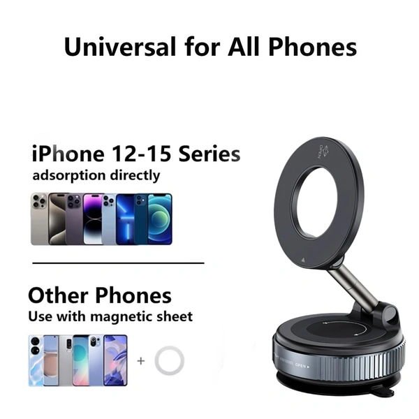 MirgIndia Vaccum Magnetic Phones Holder K007 360° Magnetic Car Mobile Holder for Dashboard Vacuum Suction Phone Holder Mount Hand Free Magnetic Cell Phone Stand with Strong Grip Shockproof Suction Cup for Car Gym Office Table - Black About this item :- 【360° Adjustable Viewing Angle】: Effortlessly rotate and tilt your phone to your preferred angle with full 360° movement. Whether navigating on the road, watching a video, or video calling, this mount ensures a crystal-clear, hands-free view in both portrait and landscape modes. 【Ultra-Strong Magnetic & Vacuum Grip】: Built with high-strength magnets and a powerful vacuum suction cup, this holder keeps your phone firmly in place—even on bumpy roads, sweaty gym mirrors, or foggy bathroom tiles. No slips, no drops, just solid stability. 【Universal Compatibility with Magnetic Ring】: Thanks to the included magnetic ring, it works with all smartphones, including iPhone, Samsung, OnePlus, Xiaomi, and more—even non-magnetic devices. It’s case-friendly and secure, offering a reliable grip for any mobile setup. 【Multi-Purpose Use on Any Surface】: Mount it anywhere: your car dashboard, windshield, bathroom mirror, gym wall, or office desk. This holder adapts to your lifestyle and is ideal for GPS navigation, video calls, workouts, or entertainment. 【Compact, Stylish & Travel-Friendly】: With its lightweight (6L x 6W x 9H cm) and sleek design, this mount fits effortlessly in your pocket or bag. Tool-free installation makes it ideal for travel, home use, or switching between locations. *Thanks for connecting (Mirgindia)* Thanks so much Shopping with Mirgindia karolbagh Delhi. *Note - China के मॉल में किसी भी प्रकार की कोई गारंटी / वारंटी नहीं होती ( चले तो चांद तक ना चले तो शाम तक )* *Only Wholesale* *Good Quality Product & long Life* *Sorry For in our Policy 🙏 | No Guarantee | No Warranty | No Return | No Refund | No Exchange 💱 |* *।। धन्यवाद ।।* 10486