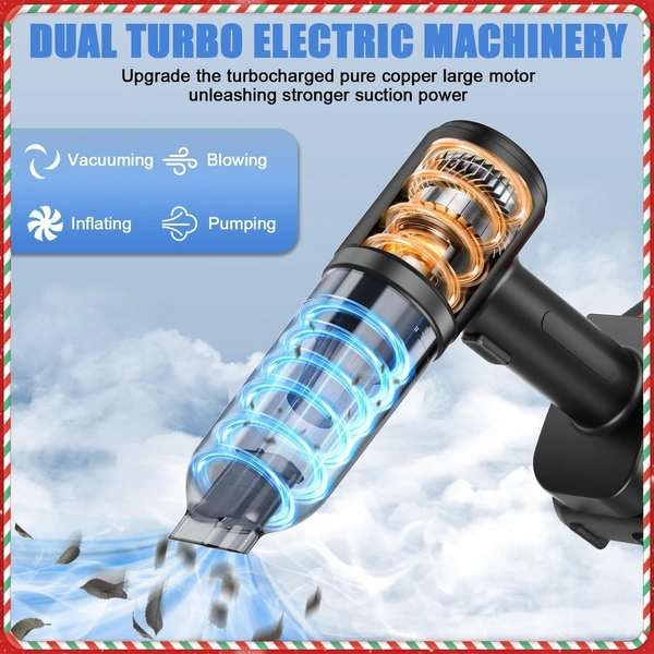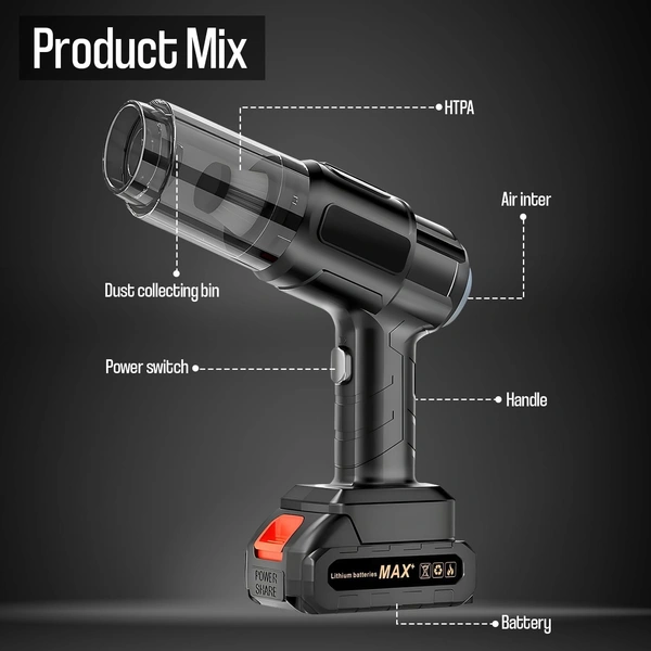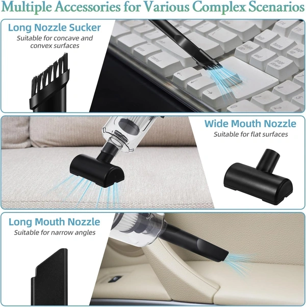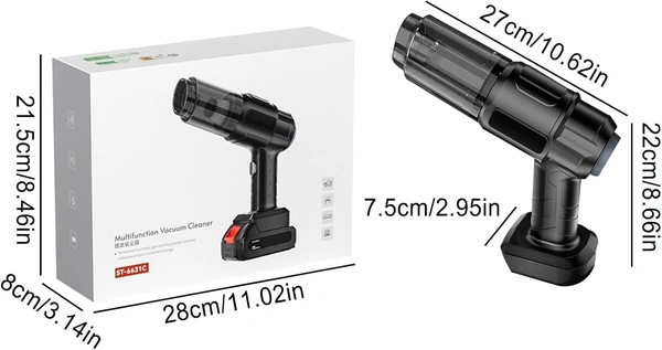 Mirgindia Vacuum Cleaner 4 in 1Wireless Handheld Car Vacuum Cleaner, 4-in-1 High Power 18000PA, Portable car Vacuum Cleaner with Blower Battery for Home & Car, 50-60 Min Runtime, Brushless Motor (Bleck) About this item :- [18000PA Powerful Suction Car Vacuum】The handheld car vacuum featuring a robust 18000Pa suction force and a power motor speed of 60,000 RPM to provide a powerful cleaning power. Effortlessly tackle car dust, pet hair and food scraps. Experience the cleaning power with this portable cordless car vacuum cleaner, make it ideal for everyday home use and all your cleaning needs 【4-IN-1 Car Vacuum Cleaner】The hand held vacuum cleaner with multiple working modes (suction, blowing, inflation) and includes 6 attachments for various cleaning tasks. The floor brush and nozzle brush easily remove dirt and debris, while the blowing nozzle clears dust from tight spaces like keyboards. The quick inflation function is perfect for items like swimming rings, enhancing family fun and outdoor activities. This flexible and cordless vacuum cleaner is a must-have for your daily routine 【50-Minute Runtime】This rechargeable hand vacuum is equipped with an upgraded detachable battery design, boasting a high battery capacity of up to 1200mAh, capable of running continuously for as long as 40 minutes. Additionally,the hand vacuum is equipped with a stable 21V 0.5A charging 【Portable and Cordless Design】 Say goodbye to tangled cords and heavy devices. The portable and cordless design of the car vacuum makes it easy to maneuver and use anywhere. Weighing just 750 gram, it provides convenience and efficiency in cleaning your car, home, or office 【Dual Function: Suction and Blower】 The vacuum cleaner it also functions as a blower. Easily switch between suction and blowing modes to clean every corner of your car and inflate air mattresses or toys. This versatile design ensures comprehensive cleaning and utility 【Easy Maintenance with Reusable Filters】 The car vacuum cleaner features a high-quality reusable filter that can be easily cleaned and reused. This not only saves you money on replacements but also ensures consistent performance and longevity for your vacuum 【Easy Installation and Operation】The vacuum cleaner features a front dust bin connector where the Flat Suction Nozzle, Multi-surface Nozzle, Flat Brush, and Air Suction Nozzle are attached. The Short Blowing Nozzle and Round Brush are mounted at the end of the vacuum cleaner for convenient access and use. *Thanks for connecting (Mirgindia)* Thanks so much. Shopping with Mirgindia karolbagh Delhi. *Note - China के मॉल में किसी भी प्रकार की कोई गारंटी / वारंटी नहीं होती ( चले तो चांद तक ना चले तो शाम तक )* *Only Wholesale | Good Quality Product & Long Life* *Sorry For in our Policy 🙏 | No Guarantee | No Warranty | No Return | No Refund | No Exchange 💱 |* *।। धन्यवाद ।।* 10396