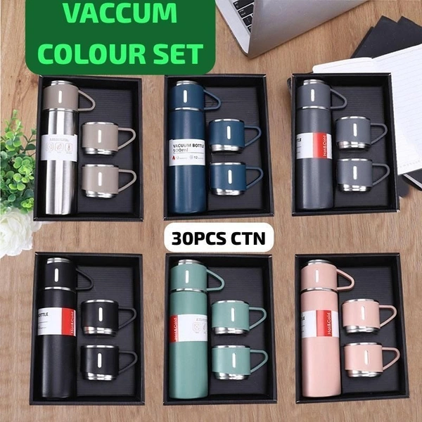 Vacuum Flask Set 3 Stainless Steel Cups - 500ml