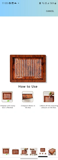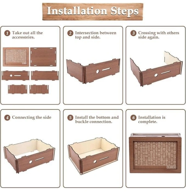 MirgIndia Wooden Money Bank, Coin Box with Carved Design for Kids/Children, Savings Challenge Box, Cashbox, Cash Vault Wooden Savings Box, Wooden Coin Piggy Bank. About this item :- Customizable Savings Goals for Adults: The wooden money saving box is designed for adults, allowing you to set savings goals up to ₹1 Lakh (100000). Perfect for tracking long-term financial goals or specific purchases, this piggy bank for adults with numbers ensures that you stay motivated as you save towards your target. Elegant & Sturdy Design: Made from high-quality wood, this wooden piggy bank offers a stylish yet durable solution to saving money. Its elegant carved design makes it a functional money bank and an attractive decorative item for any room. Versatile and Spacious: With a capacity to hold up to ₹1 Lakh, this big-size money saving box is perfect for adults looking to save large amounts. It’s also a great option for families or anyone who needs a larger savings box for adults. Secure & Convenient Access: The money saving box for adults features an easy-to-use design. Simply remove the backboard when you’ve reached your savings goal, making it convenient to access your coins and notes. The piggy bank with lock provides an added layer of security. Perfect Gift Idea for Adults: Looking for a thoughtful gift? This wooden money bank makes a unique and practical present for birthdays, holidays, or special occasions. It’s the ideal choice for women or anyone who enjoys setting and achieving financial goals in a fun and engaging way. Ideal for Financial Responsibility: Whether you’re using it for a savings challenge or managing your finances, this savings money box is an excellent tool for building good saving habits and teaching financial responsibility. Durable and High-Quality Construction: Crafted from premium wood, this 1 Lakh money saving box ensures long-lasting use, making it a durable addition to your home or office for years of saving. *Thanks for connecting (Mirgindia)* Thanks so much. Shopping with Mirgindia karolbagh Delhi. *Note - China के मॉल में किसी भी प्रकार की कोई गारंटी / वारंटी नहीं होती ( चले तो चांद तक ना चले तो शाम तक )* *Only Wholesale* *Good Quality Product & Long Life* *Sorry For in our Policy 🙏 | No Guarantee | No Warranty | No Return | No Refund | No Exchange 💱 |* *।। धन्यवाद ।।* 10448